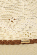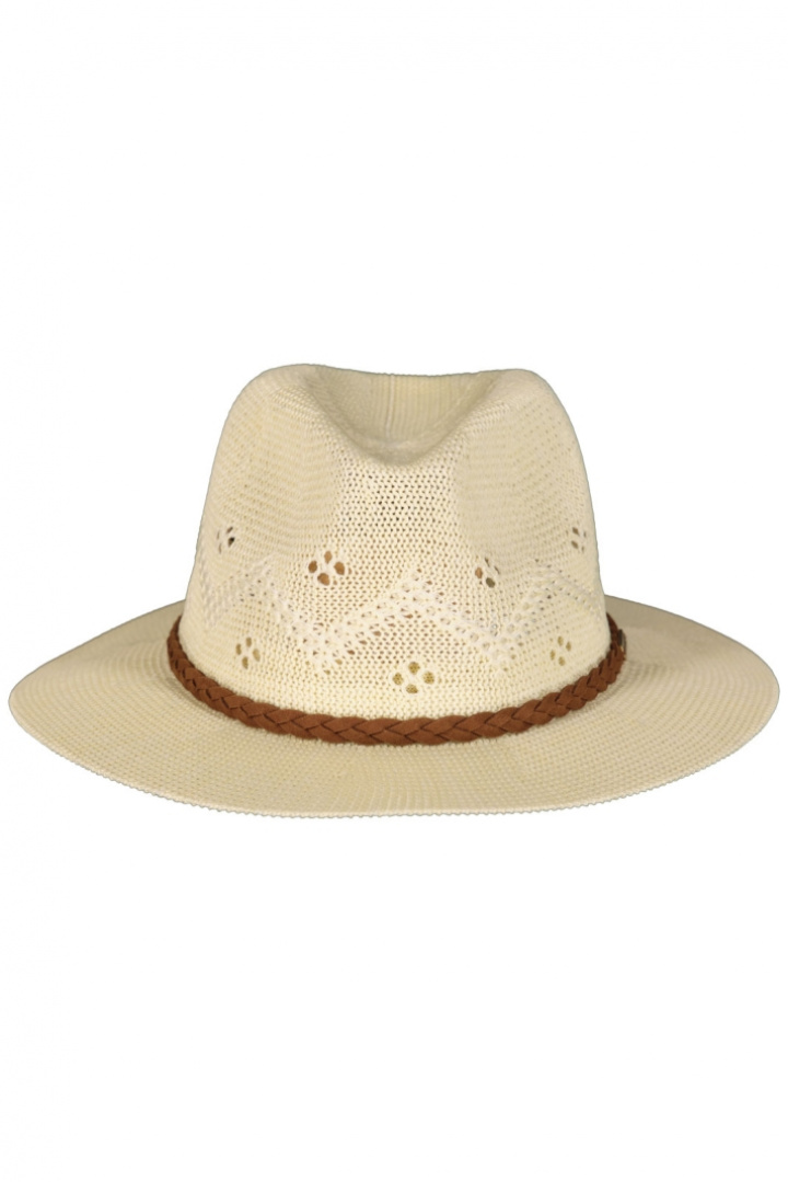 - Tällä trilby-hatulla on virkattu design, joka luo ilmavan kesäilmeen, ja siinä on punottu nahkaremmi perinteisen maaseutumaisen ilmeen aikaansaamiseksi, sekä sivulla on huomaamaton metallinen ID-tanko.