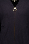 Barbour Milda Knitte -pusero naisille on ajaton neulontatyyli, joka sopii yhtä hyvin arkeen kuin hienompiin tilaisuuksiin. Siinä on normaali istuvuus, joka seuraa kroppaa ilman, että se tuntuu puristavalta, mikä tekee siitä helpon pukea T-paidan tai paidan päälle ja samalla se toimii kevyempänä välikerroksena takin alla, kun syksy saapuu. V-pääntie antaa naisellisen ja tyylikkään siluetin, kun taas käytännöllinen vetoketju edessä helpottaa lämmön ja tyylin säätämistä päivän sään ja aktiviteetin mukaan. Kaksi avointa taskua lisäävät toimivia yksityiskohtia ilman, että muotoilusta tinkiä, ja kauluksen, hihojen ja alareunan resorit pitävät vaatteen siistinä ja antavat urheilullisen, rentoutuneen lopputuloksen.