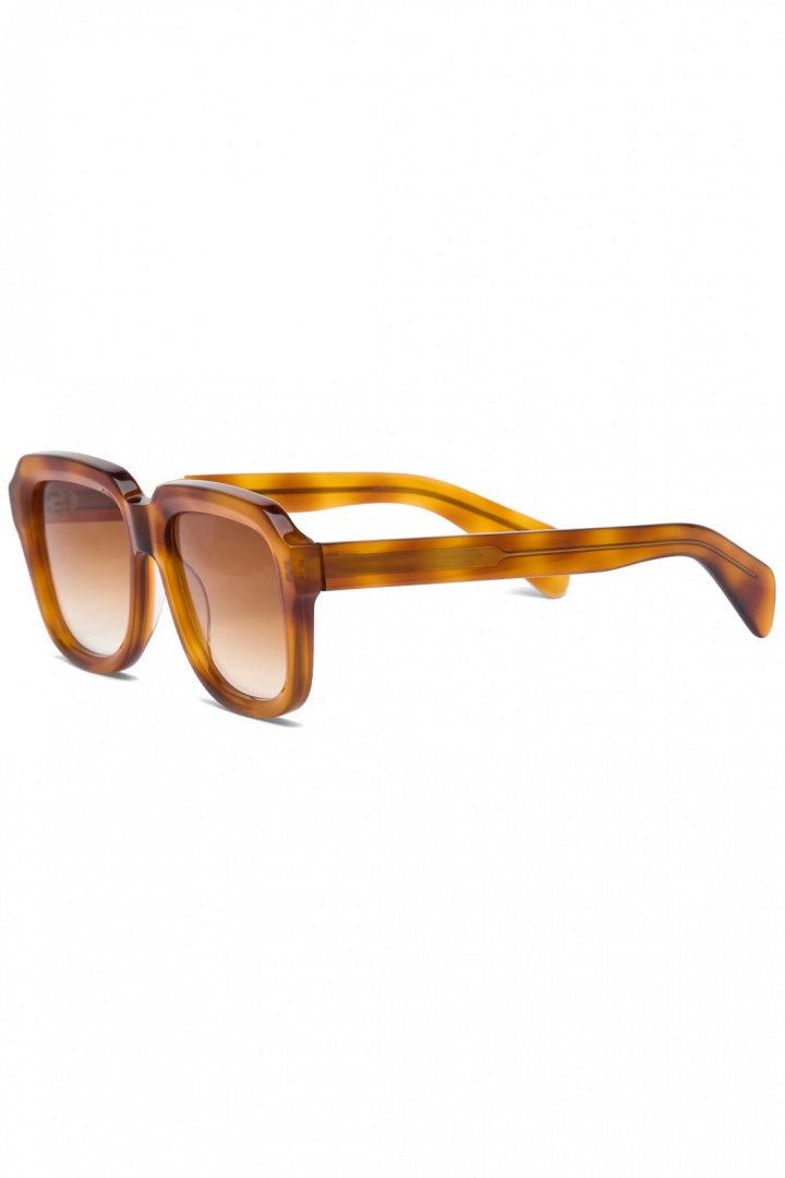 - Viides malli on neliönmuotoinen, linjoiltaan puhdas ja modernin estetiikan omaava. Kehys on käsin valmistettu ensiluokkaisesta italialaisesta asetaatista, mikä antaa kestävyyttä ja mukavuutta. CR39-linssit tarjoavat korkean kontrastin ja suojan auringonvalolta