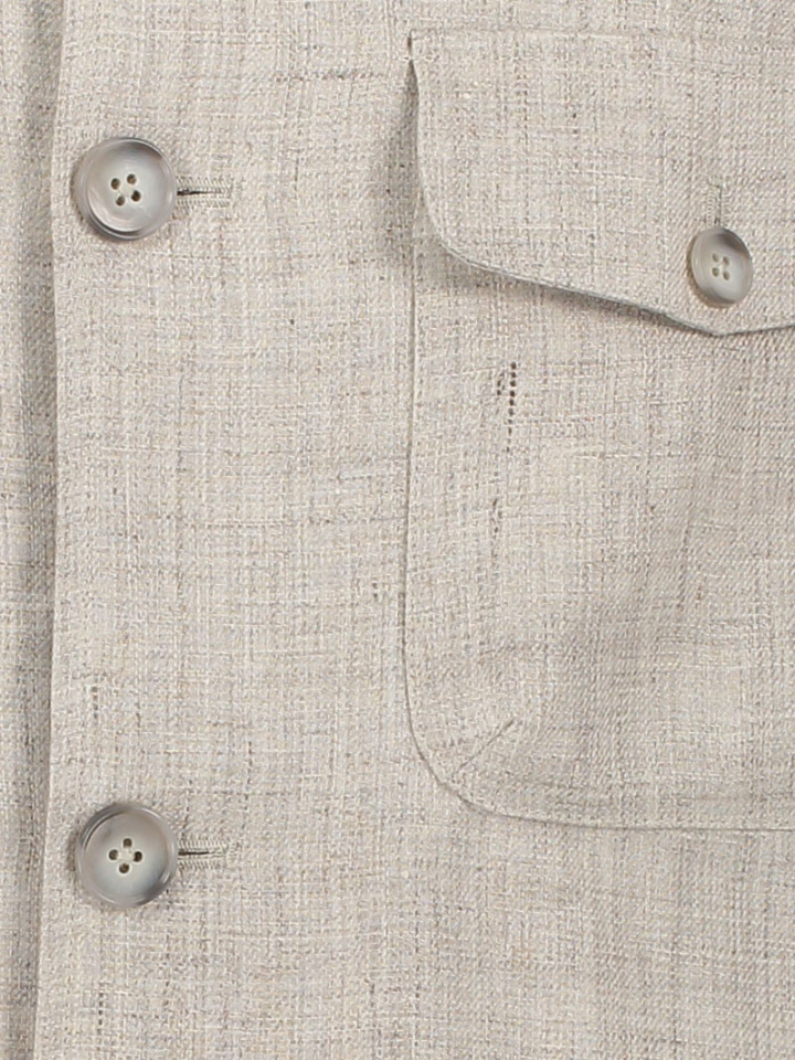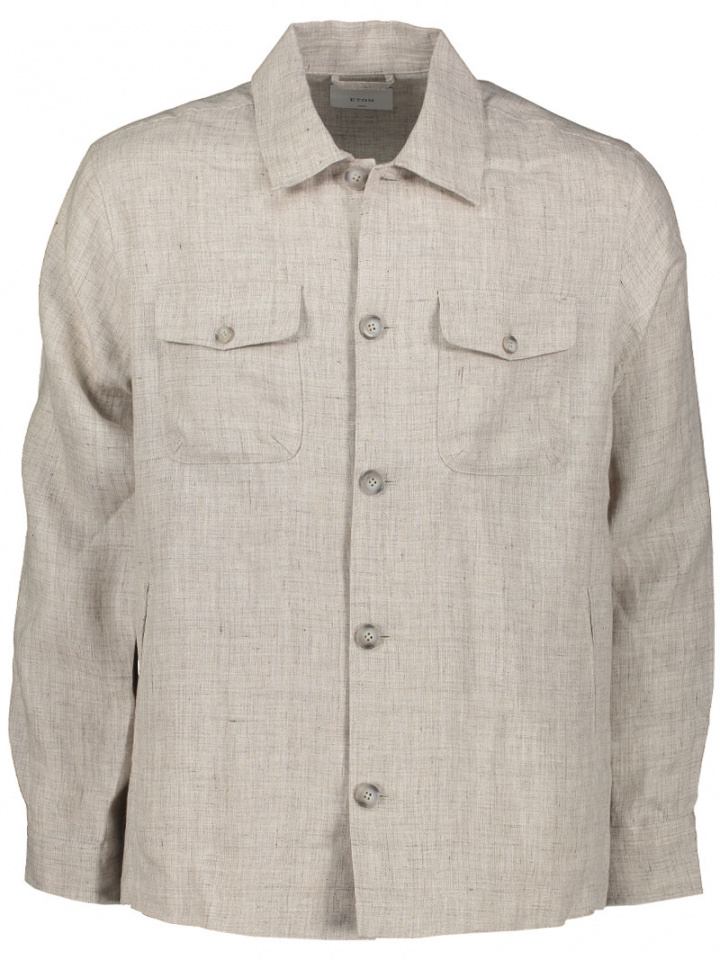 Beige Four Pocket Linen Overshirt.