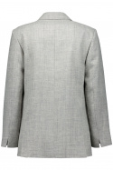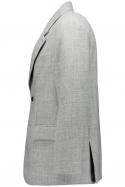 Konstruktointi on täysvuorattu ja varustettu pehmustetuilla olkapäillä, jotka tarjoavat vankan, hyvin tasapainoisen rakenteen ja säilyttävät muotonsa ajan myötä. Yksityiskohdat on huolellisesti valittu luomaan tyylikäs vaikutelma ilman liioittelua: kaksi nappia edessä, kaksi pääl pockets sekä avoin rintatasku, joita täydentää käytännöllinen tupla solki. Tämä yhdistelmä toimintaa ja estetiikkaa tekee Cyrus Jacket Blazerista varman valinnan niille, jotka haluavat ajattoman bleiserin, jossa on merkittäviä yksityiskohtia.