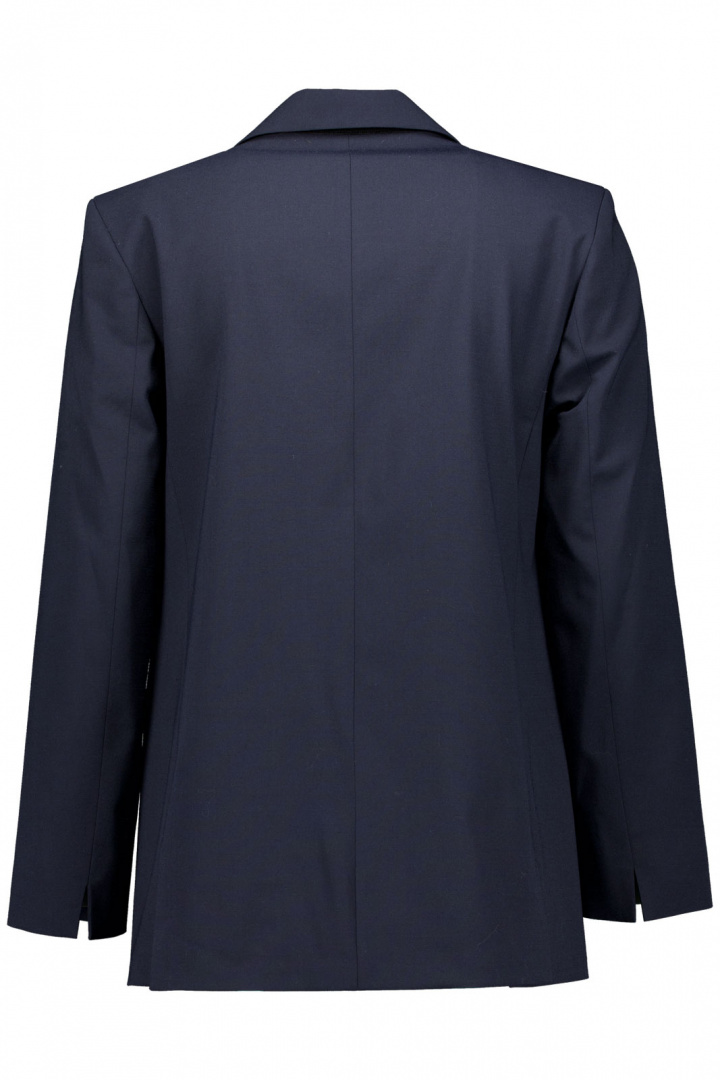 Suunnittelu on yksinkertainen mutta harkittu ja toiminnallinen: kaksi nappia edessä antavat klassisen ilmeen, joka sopii sekä muodollisiin että rennompaan tyyliin. Kaksi läpällistä taskua tarjoavat käytännöllisiä säilytysmahdollisuuksia rikkomatta puhdasta linjaa, kun taas avoin rintatasku antaa tilaa pienille henkilökohtaisille yksityiskohdille. Kaksoisreunustyylin lisää hienovaraisen urheilullisen kosketuksen ja täydentää hienostunutta ilmettä. Pitkä mitoitus antaa erottuvan, elegantin profiilin, joka sopii hyvin sekä-paidan että polo-paitojen, tai yksinkertaisemman T-paidan kanssa moderniin kaupunkityyliin.