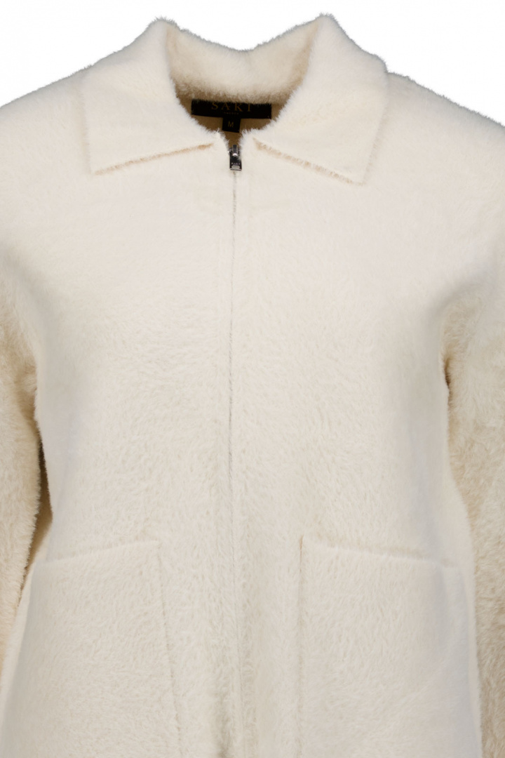 Hetty Jacket Saki:lta on naisten takki, jossa on normaali mitoitus, joka yhdistää ajattoman tyylin arjen toimivuuteen. Takissa on klassinen kaulus, vetoketju edessä ja kaksi käytännöllistä avointa taskua, mikä antaa yksinkertaisen ja tyylikkään ilmeen, joka on helppo yhdistää niin arkeen kuin kevyempiin juhliin.