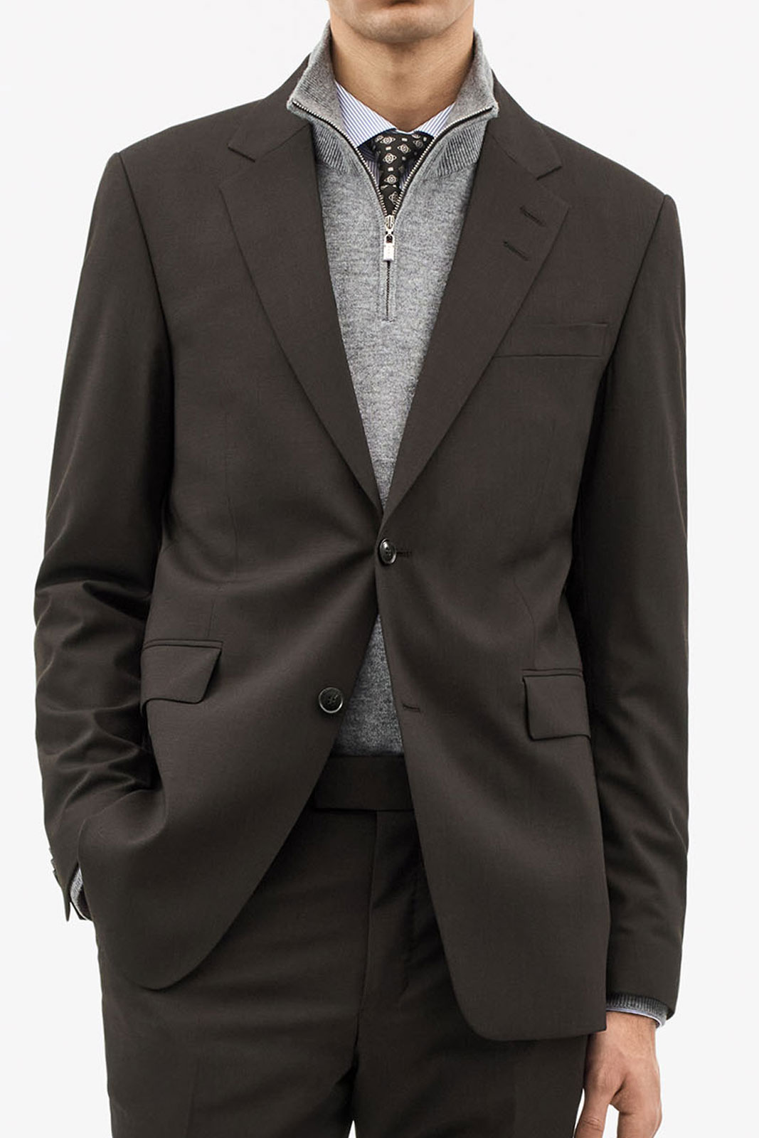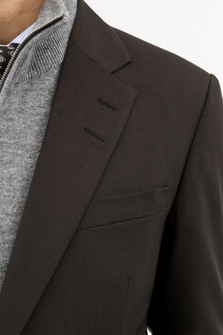 Vuori on valmistettu viskoosista (100%), joka tuntuu pehmeältä ihoa vasten ja antaa kauniin laskoksen. Ulkomateriaali yhdistää villan (44%), kierrätetyn polyesterin (54%) ja elastaanin (2%) luoden kestävä, mukava ja hieman joustava kokemuksen, joka liikkuu kanssasi päivän aikana. Kaksoisventti ja avoin rintatasku täydentävät muotoilua ja mahdollistavat pocket square -lisäyksen, joka antaa asullesi henkilökohtaisen kosketuksen. Kaksi nappia edessä ja kaksi läpällä varustettua taskua tarjoavat toimivia yksityiskohtia tinkimättä modernin blazerin tyylipuhtaasta estetiikasta.