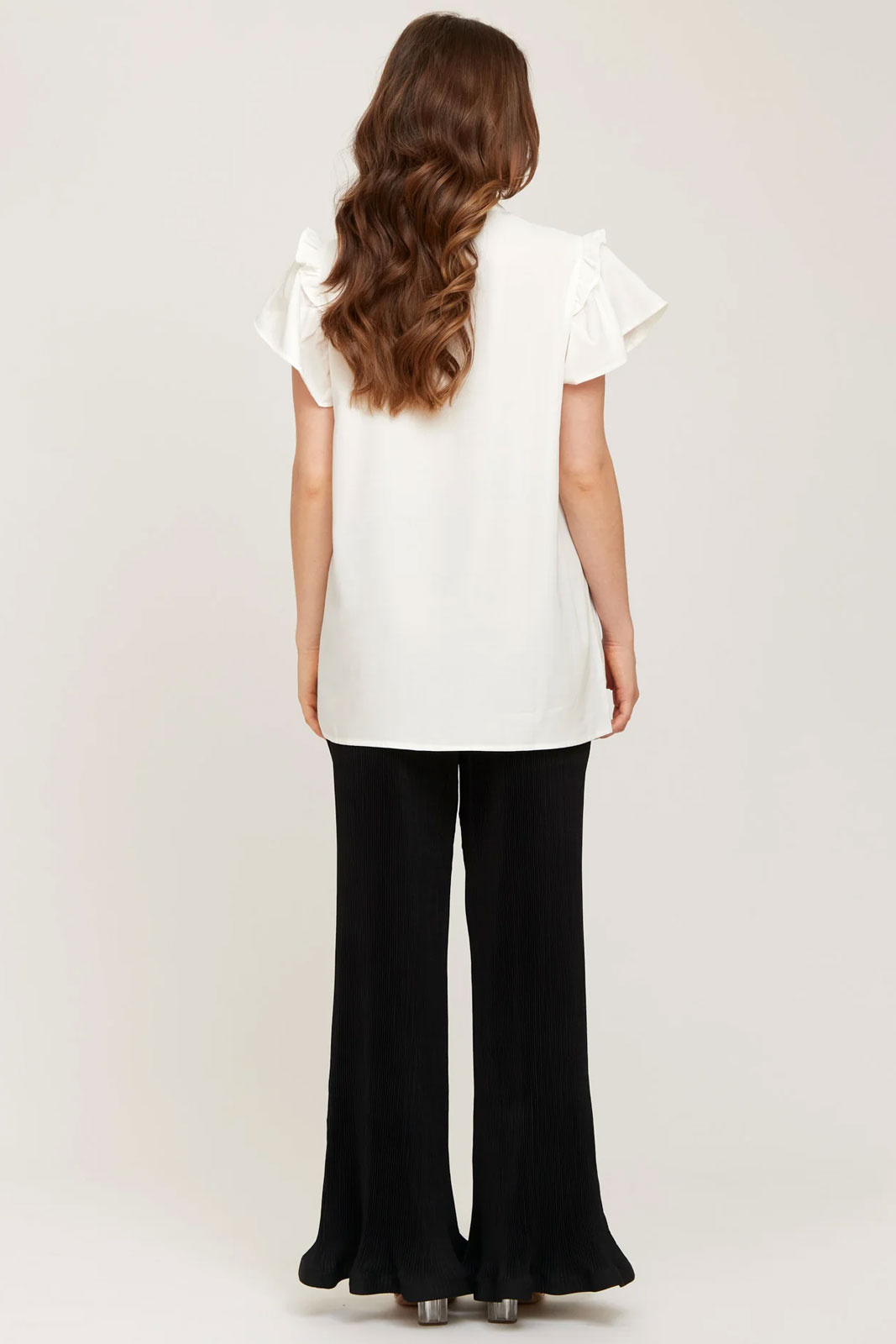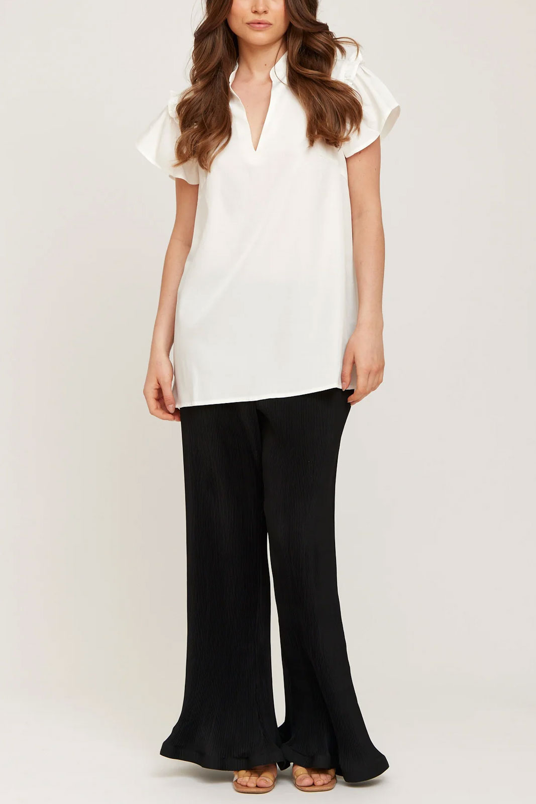 Suunnittelu on moderni ja yksinkertainen puhtaine linjoineen ja selkeine V-kaula-aukkoineen, ilman turhia yksityiskohtia, mikä tekee topista helpon yhdistää erilaisiin vaatteisiin ja väreihin. Edut ovat selkeitä: ajaton tyyli, joka sopii monenlaisiin vartalotyyppeihin, mukava normaali mitta sekä pehmeä, joustava tunne, joka tekee siitä sopivan sekä kerrospukeutumiseen että yksittäiseksi topiksi.