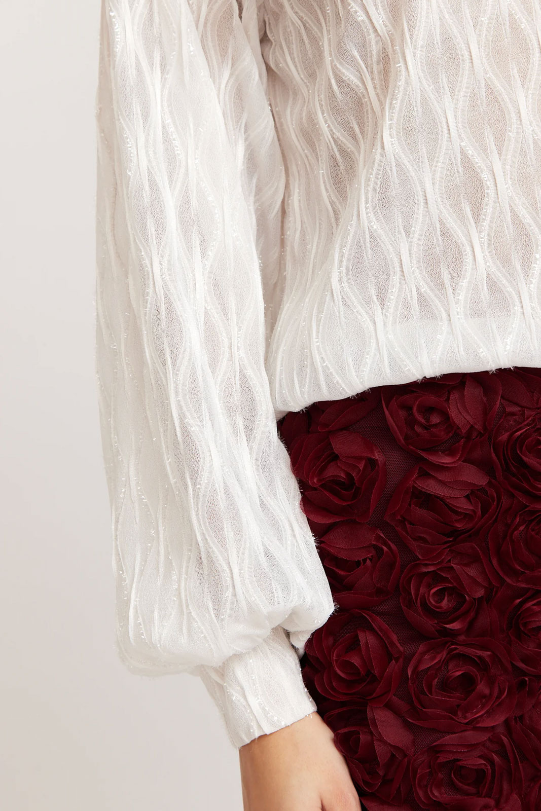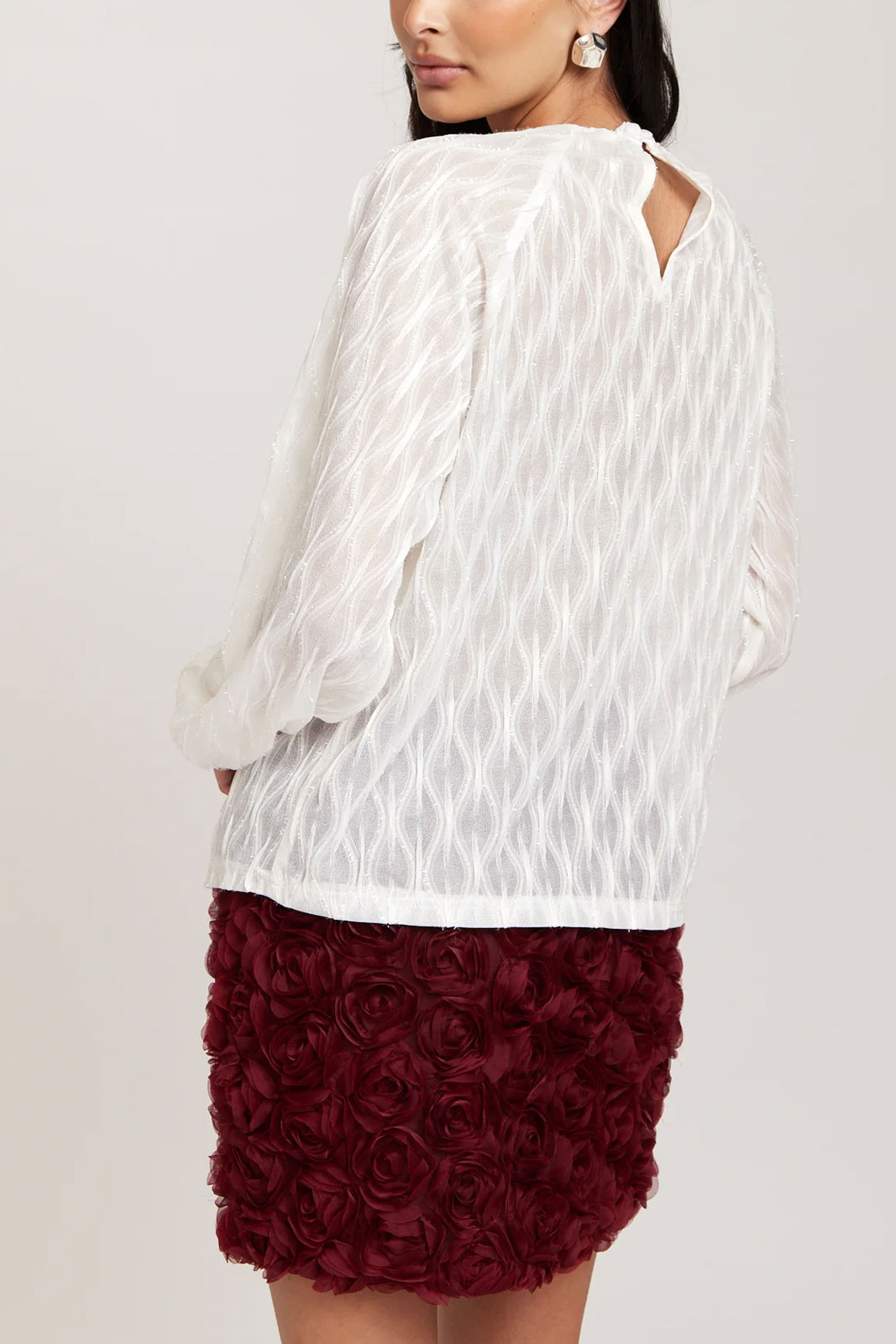 Mimmi Blouse Rut & Circlelta on naisten pusero normaalilla istuvuudella, joka rikastuttaa vaatekaappia hillityllä kimaltavalla viimeistelyllä. Pyöreä pääntie antaa pehmeän ja ajattoman ilmeen, kun taas niskassa oleva nappi tuo kauniin yksityiskohdan ja säätömahdollisuuden. Resori hiha-aukkojen reunassa luo tyylikkään, hieman puffimaisen siluetin ja mukavan istuvuuden, joka sopii niin arkeen kuin juhlaan. Kimaltava pinta vangitsee valon tyylikkäällä tavalla ilman liiallista ylilyöntiä, joten puseroa voi käyttää sekä tyylikkäänä perustekstiilinä että näyttävänä vaatteena enemmän juhlavissa asuissa. Valmistettu 95 % polyesterista ja 5 % elastaanista, materiaaliseos tarjoaa hyvän drapeen ja kevyen joustavuuden liikkumisen vapauden ja mukavuuden takaamiseksi. Mimmi Blouse on monipuolinen valinta, jota on helppo yhdistellä sekä hameen että housujen kanssa, mikä tekee siitä oivan hankinnan niin toimistoon kuin viikonlopun aktiviteetteihin. Valitse tämä pusero Rut & Circlelta modernin, mukavan ja upean tyylin saavuttamiseksi, joka kestää pitkään.