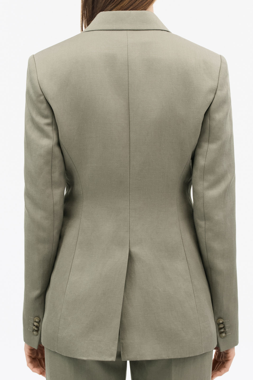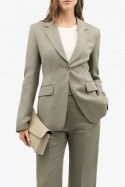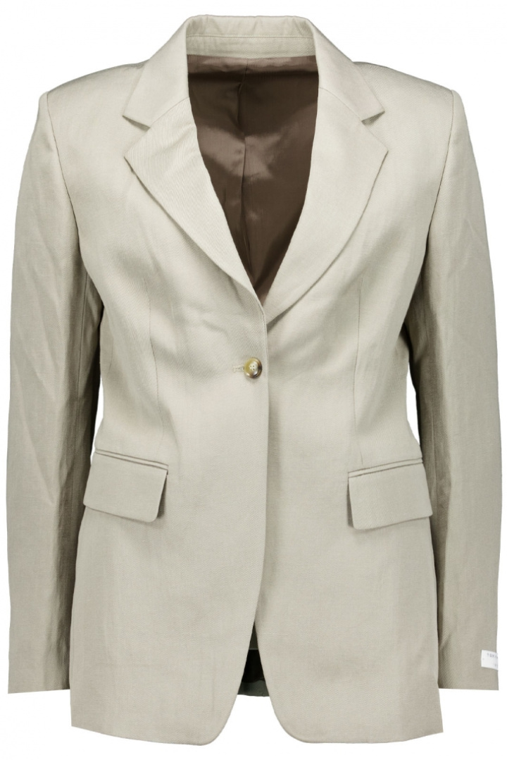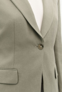 Sisäpuolelta löydät käytännöllisiä ja tyylikkäitä yksityiskohtia: yksinkertainen nappikiinnitys edessä siistille siluetille sekä kaksi läpällistä taskua, jotka tarjoavat säilytystilaa rikkomatta suunnittelua. Yksinkertainen ventti tarjoaa lisäliikkumavapautta ja mukavuutta, mikä tekee kavajista helpon yhdistää sekä hameeseen että housuihin ja erilaisiin paitoihin. Tämä kavaji on hyvä valinta sinulle, joka haluat muotoilla, monikäyttöisen blazerin, joka toimii yhtä hyvin työssä kuin tilaisuuksissa, joissa haluat tehdä jämäkän ensivaikutelman.