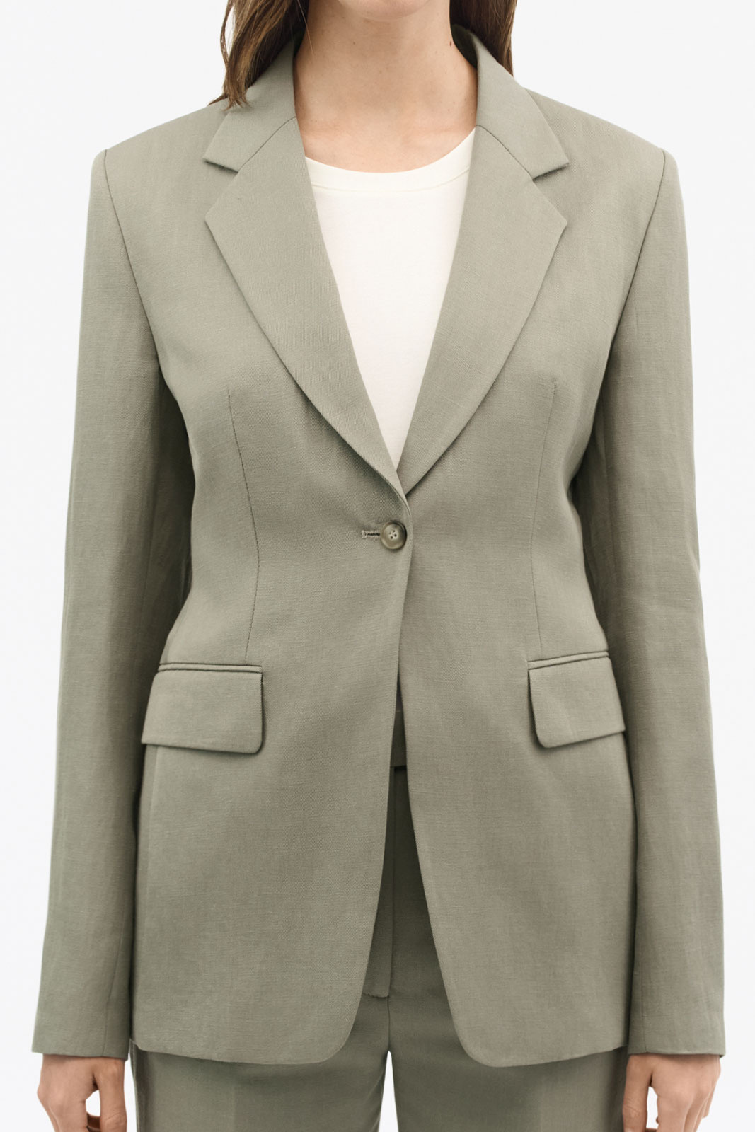 Valmistustiedot puhuvat selvää kieltä: päämateriaali koostuu miellyttävästä pellava- ja lyocellisekoituksesta, jossa pellavaa on 34% ja lyocellia 66%, mikä mahdollistaa luonnollisen ilmanvaihdon, hienon drapoinnin ja mukavuuden päivän aikana. Vuori on 100% viskoosia, mikä lisää sileää tuntumaa ja pitkää kestoa. Tässä kavajissa on pehmustetut olkapäät, jotka antavat määritellyn olkasauman ja tyylikkään rakenteen, täydellinen ammatilliseen ilmeeseen, joka silti tuntuu pehmeältä ja mukavalta.