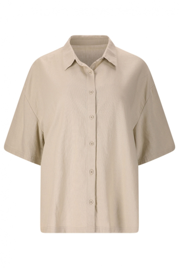 Natasha W SS Shirt Nou:lta on naisille suunnattu malli, jossa on rento istuvuus, yhdistäen arkisen mukavuuden rauhalliseen, tyylikkääseen eleganssiin. Klassinen kaulus ja käytännöllinen napitus edessä antavat vaatteelle ajattoman ilmeen, jota on helppo pukea ylös tai alas. Valmistettu pehmeästä pellava-viskoosiseoksesta (55% pellavaa, 45% viskoosia), paita tarjoaa viileyttä ja hengittävyyttä samalla kun sen pehmeä, joustava laskos tekee siitä mukavan kantaa koko päivän. Rentoa istuvuutta antaa vapauden liikkua ja helppoa tyyliä, kun taas puhdas etuosa myötävaikuttaa moderneihin ja hienostuneisiin siluetteihin. Tämän linnepaidan edut ovat selvät: luonnollisten kuituominaisuuksien, kuten lämpötilansäädön ja hyvän hengittävyyden yhdistelmä viskoosin sulavan las