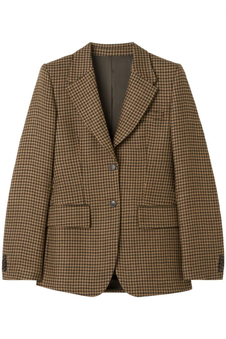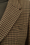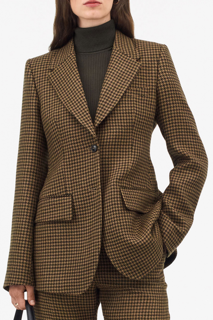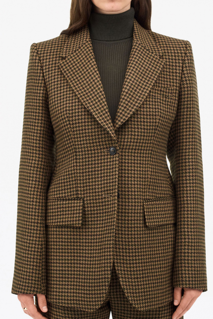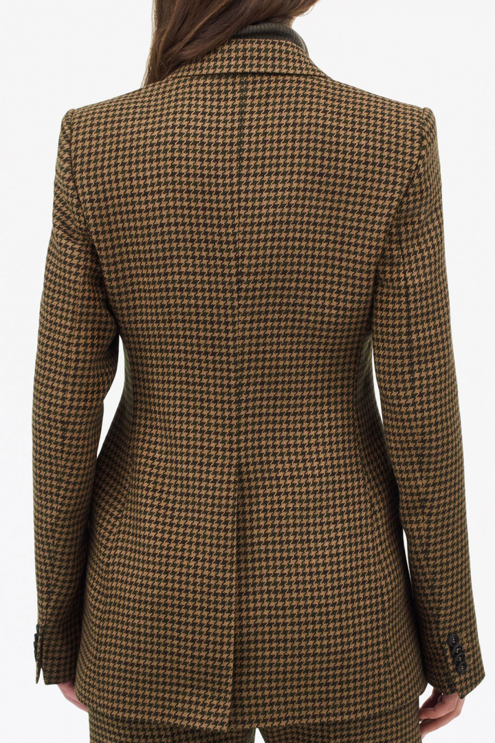 Tämä houndstooth-kuvioinen bleiseri on suunniteltu huolellisesti jokaista yksityiskohtaa myöten: kaksi nappia edessä eleganttiin sulkemiseen, kaksi taskua kansilla sekä avoin rintatasku, jonka avulla voit kantaa tyylikästä pocket squarea tai pitää tärkeimmät asusteesi lähelläsi. Yksirivisyys takana antaa optimaalisen liikkuvuuden ja luonnollisen, mukavan istuvuuden koko päivän ajan.