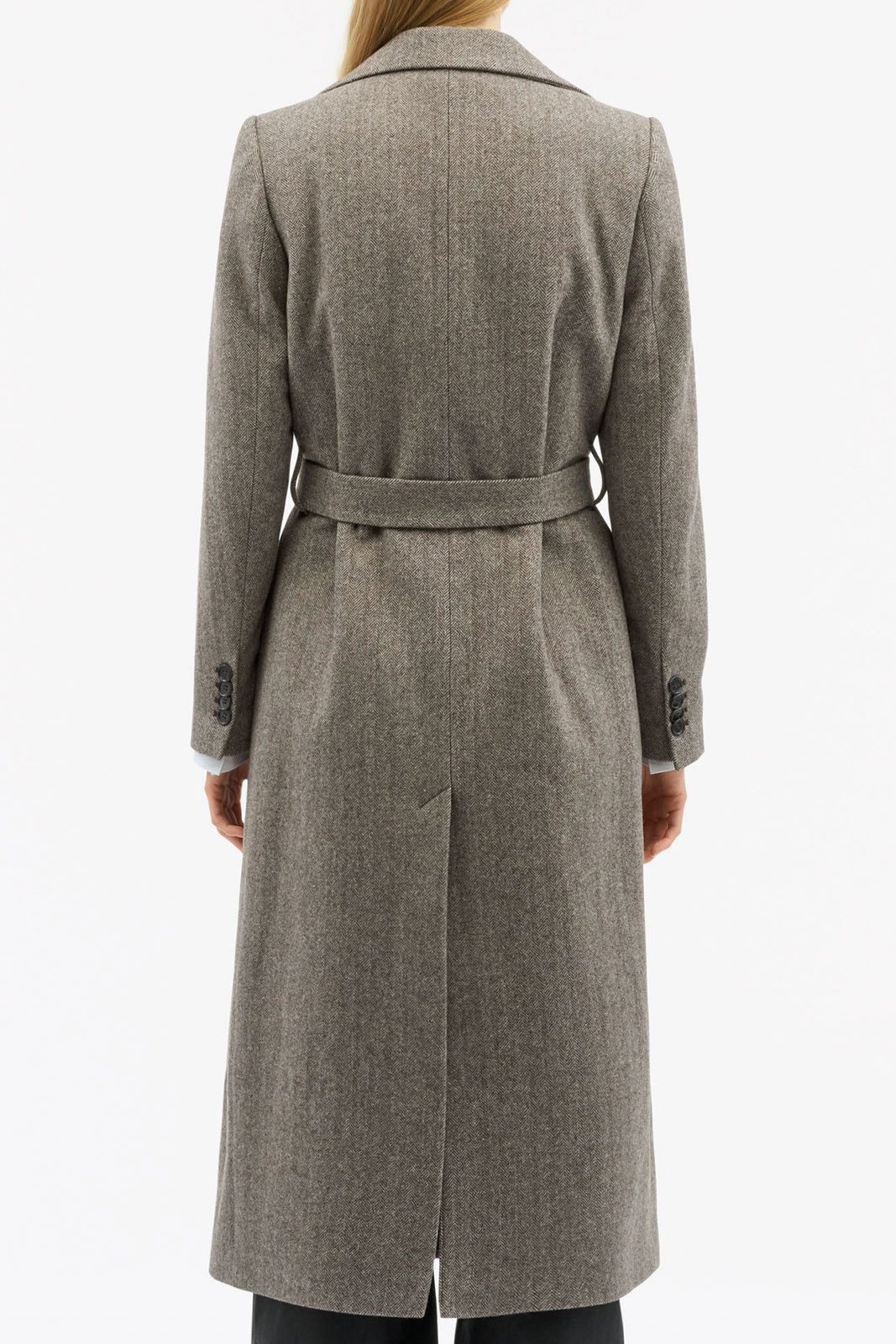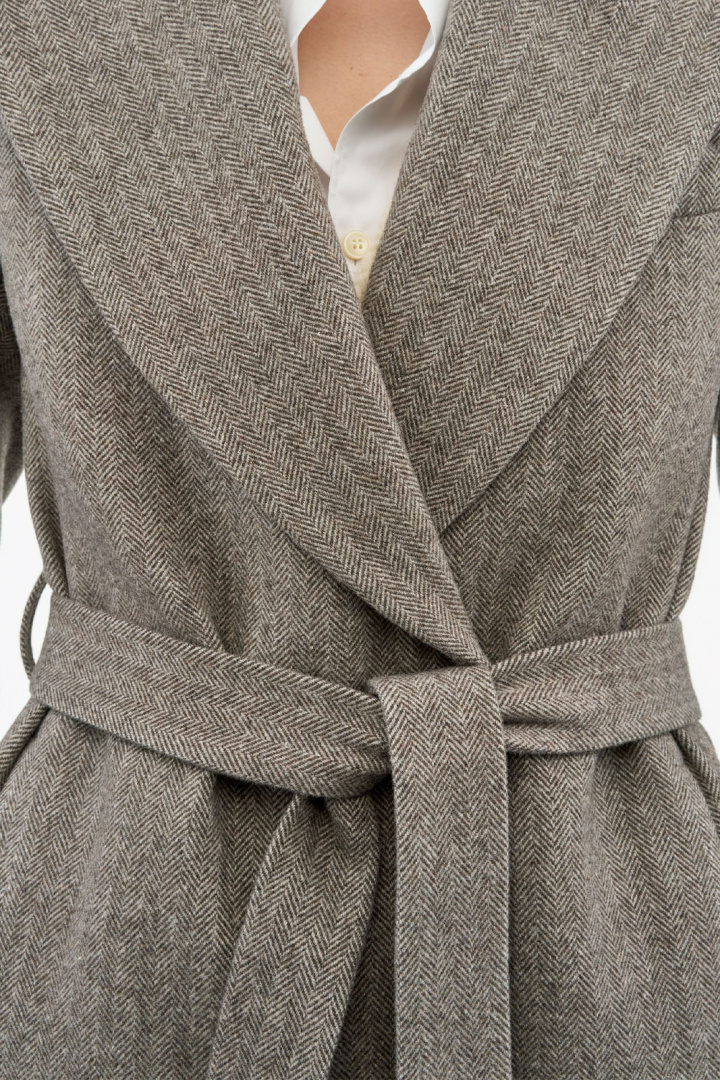 Materiaali on huolellisesti valittu kestävyys ja mukavuus huomioon ottaen. Takki koostuu villasekoitteesta, jossa 60% on kierrätettyä villaa, mikä tarjoaa luonnollista lämpöä ja hyvää rakennetta tinkimättä mukavuudesta. Lisäksi siinä on 10% kashmiria extra pehmeyden vuoksi, 27% polyesteria, joka lisää kestävyyttä ja tukevuutta, sekä 3% muita kuituja, jotka täydentävät mukavuutta. Vuori on 100% viskoosia, joka antaa pehmeän, miellyttävän tunteen ihoa vasten ja helpottaa takin pukemista ja riisumista.