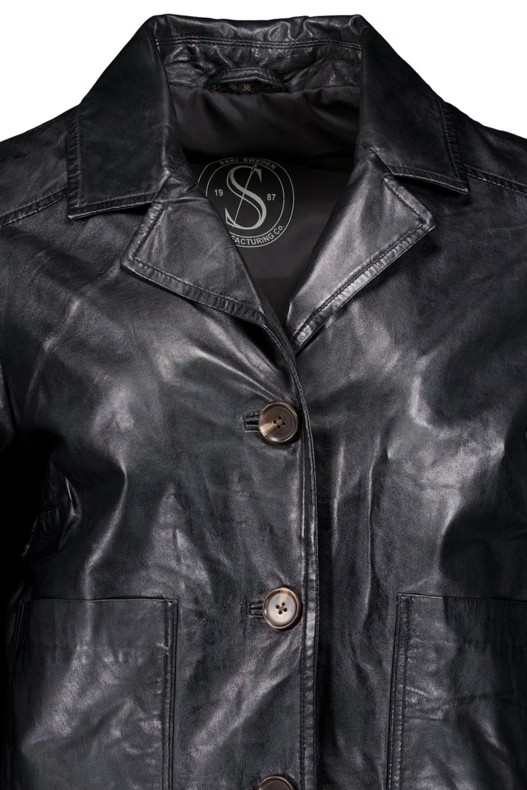 • Nahkajakku Saki:sta.