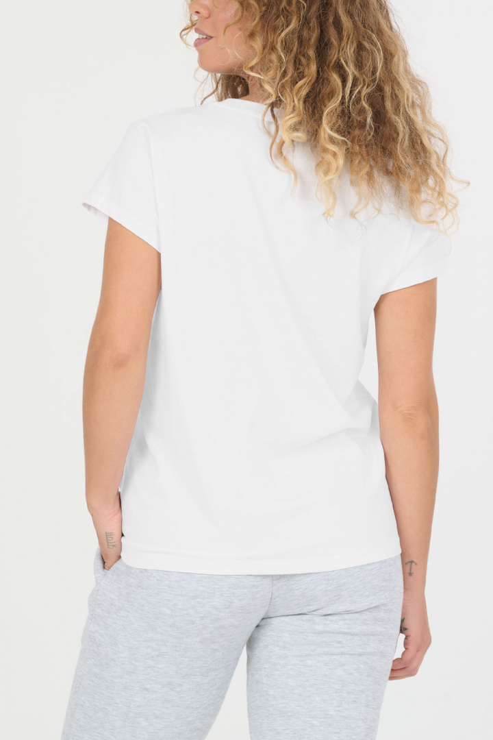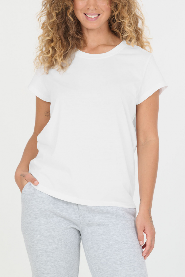 Tutustu Highmore V2 W S/S Tee T-paitaan Nou:lta – ajattomaan naisten t-paitaan, joka on 100 % puuvillaa ja soveltuu yhtä hyvin arkeen kuin rentoihin hetkiin. Siinä on pyöreä pääntie ja normaali istuvuus (regular fit), joka myötäilee vartaloa ilman, että se tuntuu tiukalta, kun taas lyhyet hihat luovat yksinkertaisen ja siistin siluetin, joka on helppo stailata. Pehmeästä puuvillasta valmistettuna se tarjoaa luonnollista mukavuutta ja hyvää hengittävyyttä koko päivän ajan, joten se tuntuu miellyttävältä iholla niin paikallaan työskentelyssä kuin aktiivisissa vapaa-ajanaktiviteeteissä. Tämä t-paita toimii erinomaisesti perustana vaatekaapissa - helppo yhdistää farkkuihin, hameeseen tai arkipukeutumiseen. Valitse Highmore V2 W S/S Tee T-paita Nou:lta, kun etsit