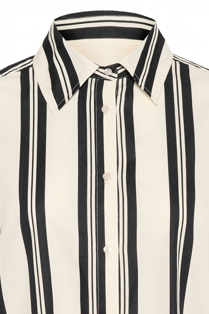 Balaiw Shirt Inwearilta on naisten paita rentoutuneessa mallissa, joka yhdistää ajattoman eleganssin nykypäivän mukavuuteen. Raidallinen muotoilu tuo klassisen kauluksen ja neliömäisen cuffin esiin tyylikkäällä tavalla, samalla kun yksinkertainen napitus edessä tekee paidasta helpon tyylitellä ja käyttää. Valmistettu 100 % puuvillasta, se tuntuu pehmeältä ihoa vasten, hengittää hyvin ja antaa luonnollisen, viileän tunteen ja pitkän kestävyyden. Rentoutunut malli antaa liikkumisvapauden menettämättä muotoaan, mikä tekee Balaiw Shirtista monipuolisen valinnan niin arkeen kuin hieman juhlavamman tilaisuudenkin.