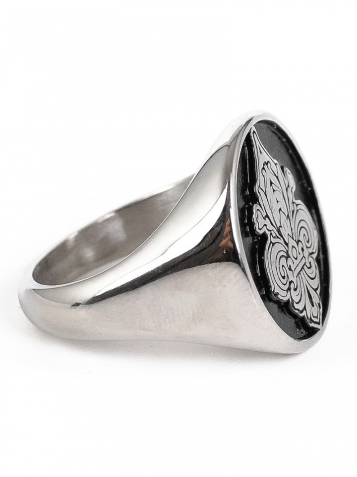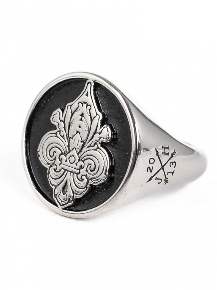 - Sormus, jossa on rauhalilja, joka makaa mustan taustan päällä