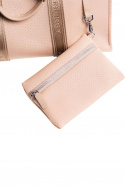 Cali Tote -neopreenilaukku on urheilullinen luksuslaukkumme. Ulkokuori on valmistettu korkealaatuisesta neopreenimateriaalista, jossa on nahkayksityiskohtia. Kahva on valmistettu diskreetistä logonauhasta, jonka kuosi on sävyynsä sopiva, ja siinä on myös irrotettava olkahihna, jos haluat. Laukun sisäpuolella on samaa materiaalia oleva lompakko.