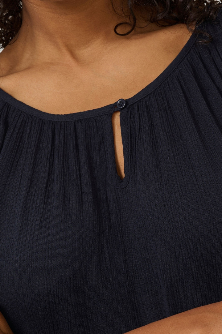 Amber Tunika Kafelta on normaalimallinen naisten tunika, joka yhdistää yksinkertaisen eleganssin arjen mukavuuteen. Pyöreä pääntie on koristettu napilla, joka tuo hienostuneen klassisen yksityiskohdan, kun taas neliömäinen hihansuu antaa modernin sävyn ja tyylikkään luonteen. 100 % viskoosista valmistettu kangas laskeutuu pehmeästi ja tuntuu miellyttävältä ihoa vasten, samalla kun se tarjoaa kauniin drapoinnin, joka sopii niin arkivaatteisiin kuin hieman juhlallisempiin asuihin.