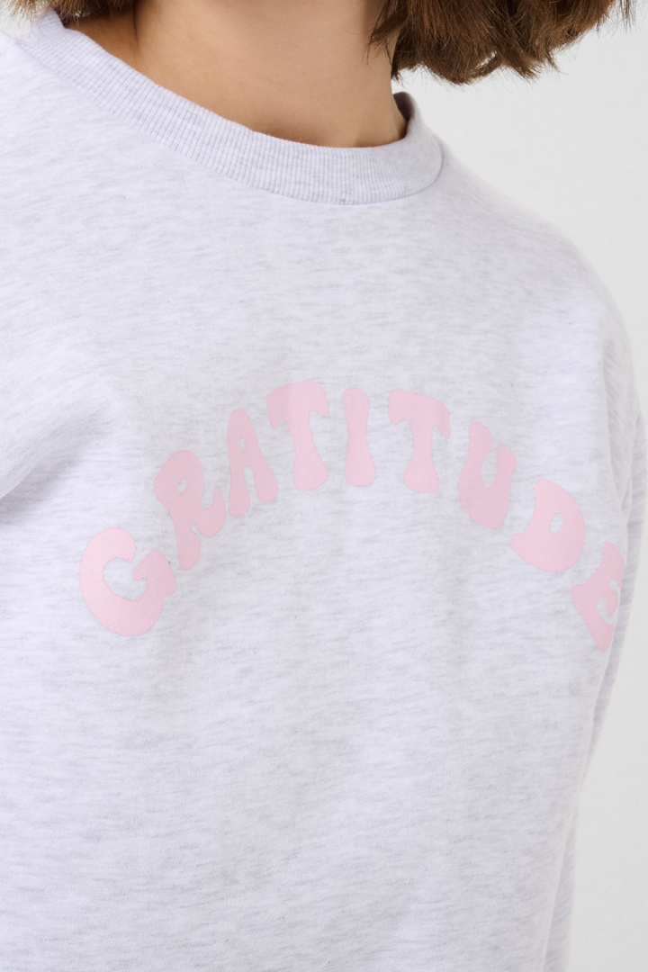 Materiaalissa on 85% puuvillaa ja 15% polyesteriä, joka tarjoaa pehmeän tunteen ihoa vasten samalla kun vaate säilyttää muotonsa ja värit pesu pesun jälkeen. Tämä sweatshirt on täydellinen perustaas päivittäiseen vaatekaappiin - yhdistä se farkkujen kanssa rentoon ilmeeseen tai hameen ja tennareiden kanssa rauhalliseen, tyylikkääseen tyyliin