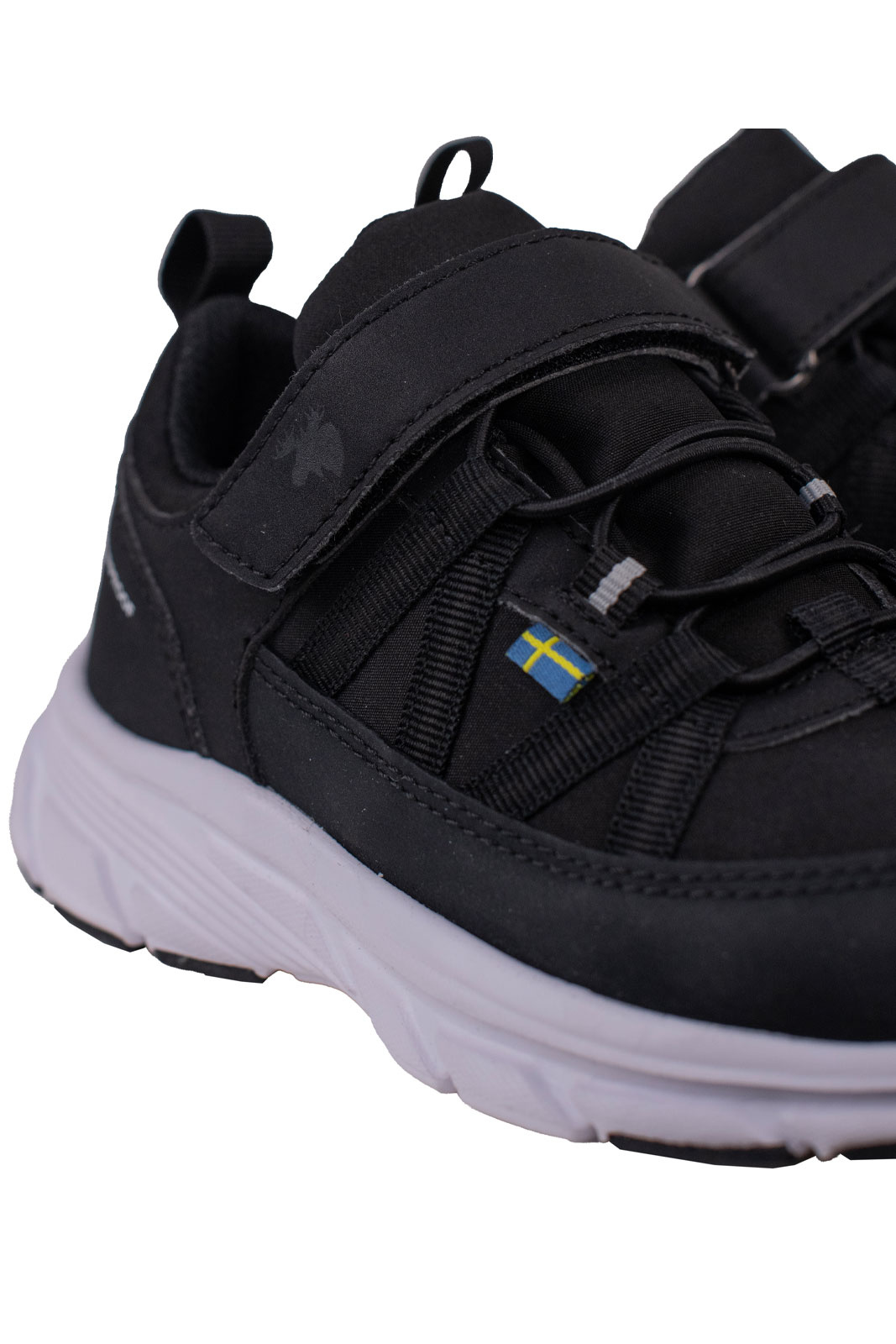 - Säädettävä tarranauha ja yläpuolella olevat joustavat nauhat parhaan istuvuuden takaamiseksi