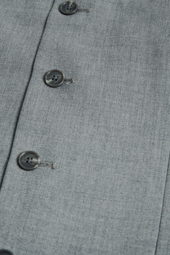 Päämateriaali on laadukas villasekoitus, joka koostuu 60% polyesteristä, 35% villasta ja 5% elastaanista. Tämä sekoitus antaa kauniin laskostuksen, luonnollisen villatunteen ja kestävyyden samalla kun elastaani tuo kevyttä venyvyyttä lisäämään mukavuutta. Edessä oleva nauhoitus säilyttää klassisen kostyymiliivin profiilin, kun taas käytännölliset yksityiskohdat tekevät liivin arjessa käytöstä helppoa: kaksi avointa taskua tarjoavat tilaa pienille esineille ja avonainen rintatasku tuo tyylikästä ilmettä kuvioiden tai asusteiden avulla tarpeen mukaan.