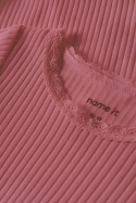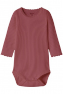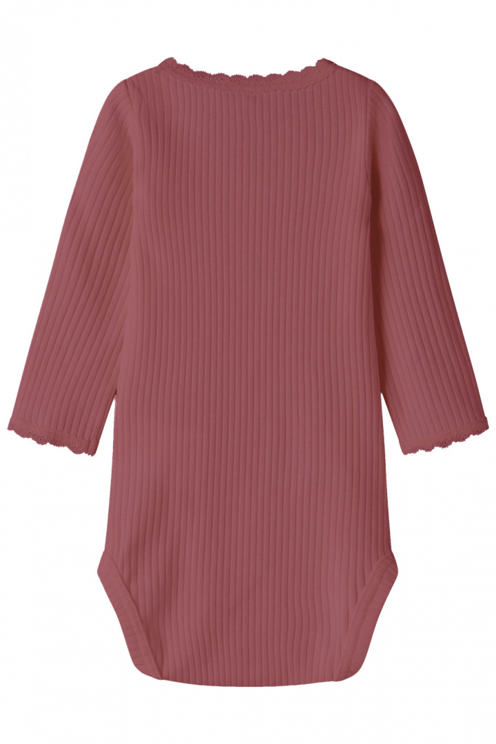 Nbfhallie Ls Body Name Itiltä on pehmeä ja käytännöllinen vaate normaalissa istuvuudessa, joka sopii täydellisesti lapsen vaatekaapin peruskerrostukseen. Valmistettu ekologisesta puuvillasta (97 %) ja 3 % elastaanista, se tuntuu miellyttävältä ihoa vasten ja tarjoaa hyvää liikkuvuutta leikin ja arjen aikana. Pyöreä kaula-aukko istuu mukavasti kaulalla ja tekee pukemisesta ja riisumisesta helppoa ilman puristamista. Ribattu rakenne tuo mukavuutta ja kestävyyttä, kun taas pitsiyksityiskohdat antavat söpön ja leikkisän vivahteen, joka sopii erilaisiin tilaisuuksiin. Käytännölliset nepparit haarassa tekevät vaipanvaihdosta sujuvaa ilman, että vaatteita tarvitsee vaihtaa. Neutraali muotoilu ja pehmeä materiaali tekevät tästä bodysta