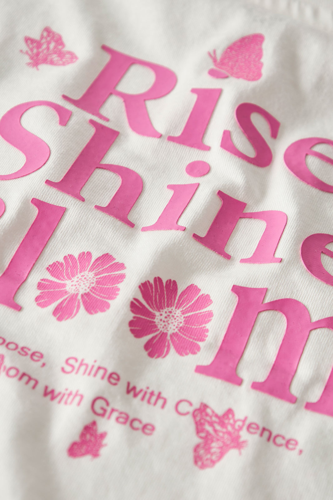 Painettu printti, jossa on glitteri.