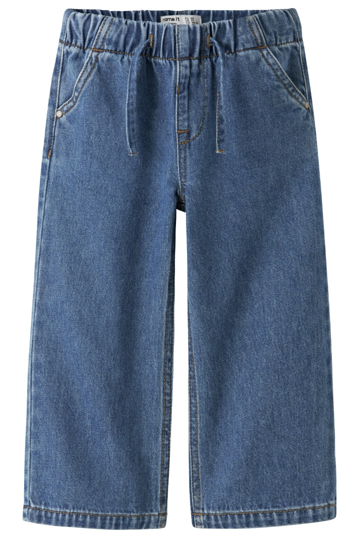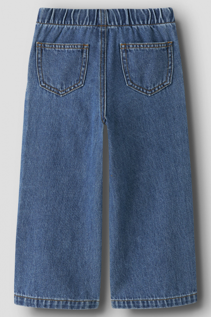 Nmfrose Wide Pull Up Jeans 4446-by Name It -merkkiseltä on lasten farkut, joissa on normaali vyötärö, jotka yhdistävät mukavuuden, toiminnallisuuden ja tyylikkään arkityylin. Säädettävä vyötärönauha napilla tarjoaa turvallisen, kasvavan istuvuuden, joka seuraa lapsen kasvua. Regular-lantioistuvuus ja leveät lahkeet tarjoavat hyvän liikkuvuuden ja rentoutuneen siluettiliinjan, joka sopii sekä leikkiin että arkeen. Avoimet sivutaskut ja avoimet takataskut tekevät pienten tavaroiden mukana pitämisestä helppoa, kun taas koristelangat antavat lapselle mahdollisuuden tunnistaa leikkisä yksityiskohta liioittelematta. Materiaali koostuu 80 %
