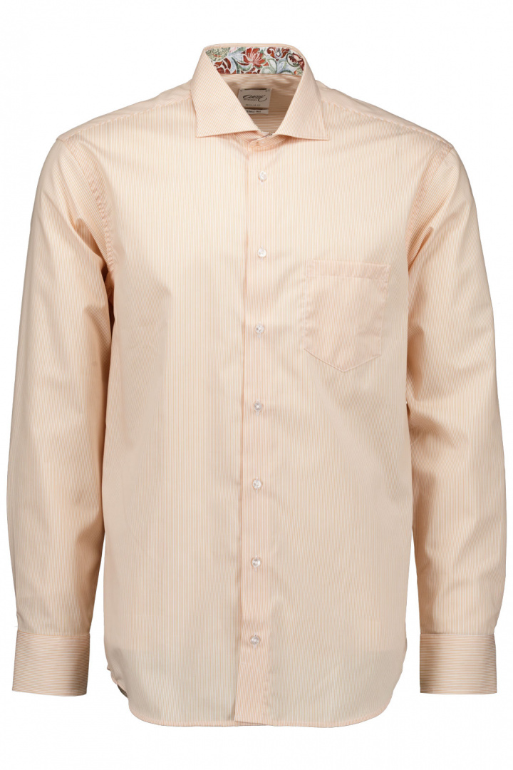 Oscar Skjorta 6516 Reg från Oscar Of Sweden är en tidlös randig skjorta för herr som levererar både stil och komfort i varje detalj. Den klassiska kragen kombineras med vinklad manschett för en elegant och uppdaterad touch, medan knappknäppningen framtill skapar en ren, mångsidig silhuett som enkelt kan styles med eller utan kavaj. Den öppna bröstfickan ger ett avslappnat, vardagligt inslag utan att kompromissa med den övergripande elegansen.