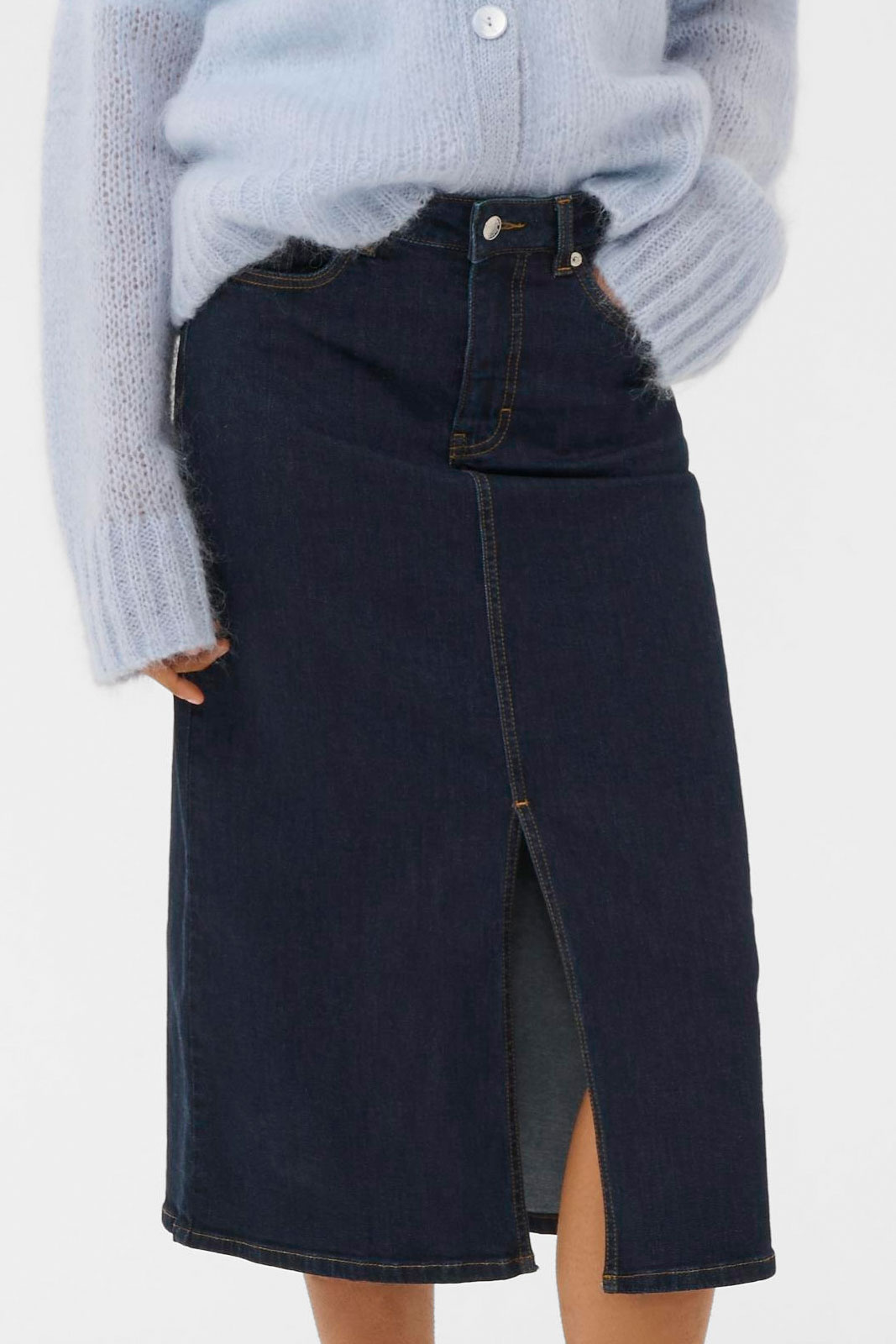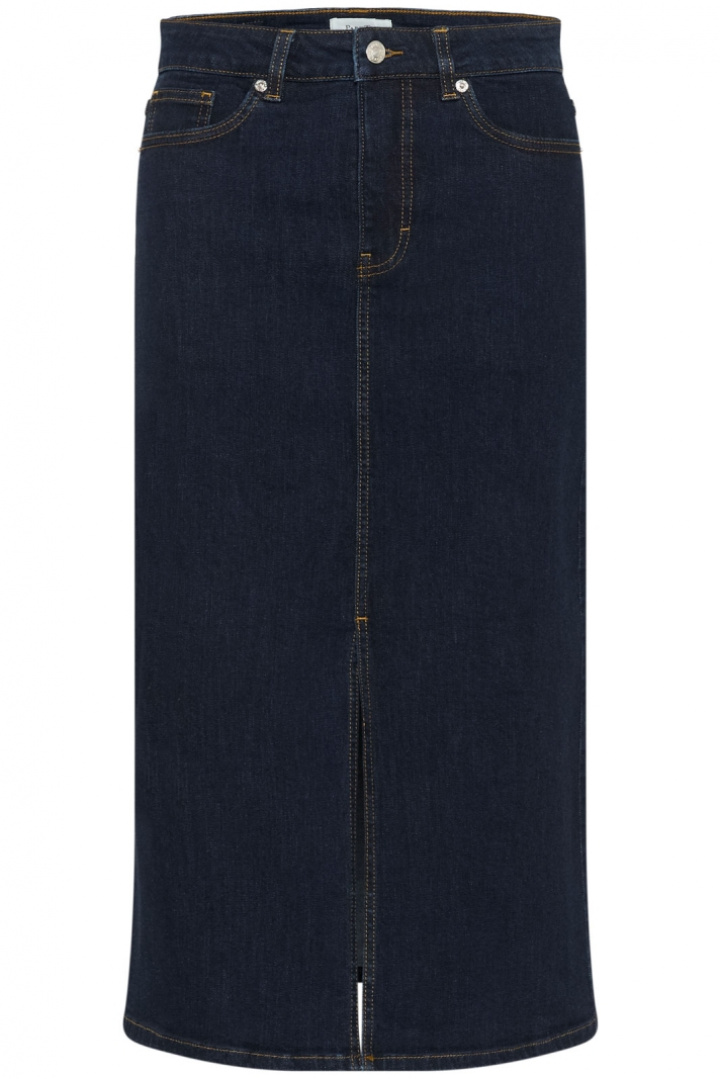 Dillinpw Skjol från Part Two on naisten jeanshame, jossa on normaali vyötärö ja suora malli, joka tarjoaa ajattoman ja mukavan siluetin. Klassinen viisitaskumalli yhdistyy käytännölliseen nappi- ja vetoketjusuljettuun sekä joustavaan halkioon alhaalla, joka mahdollistaa liikkumisen rauhassa ilman tyylistä tinkimistä. Tämä jeanshame on täydellinen arkipukeutumiseen, toimistotyylistä vapaa-ajan asuihin, ja se sopii yhtä hyvin yksinkertaisen t-paidan kuin hienomman paidan ja tennareiden kanssa.
