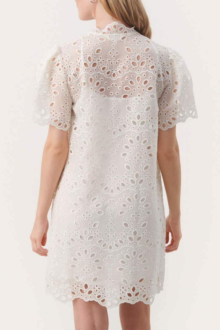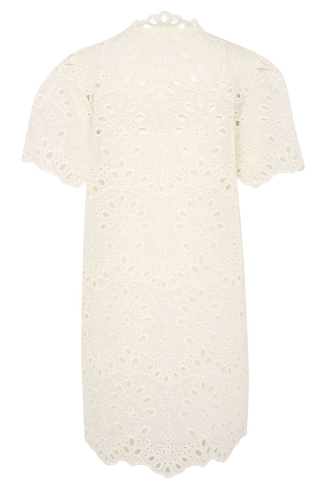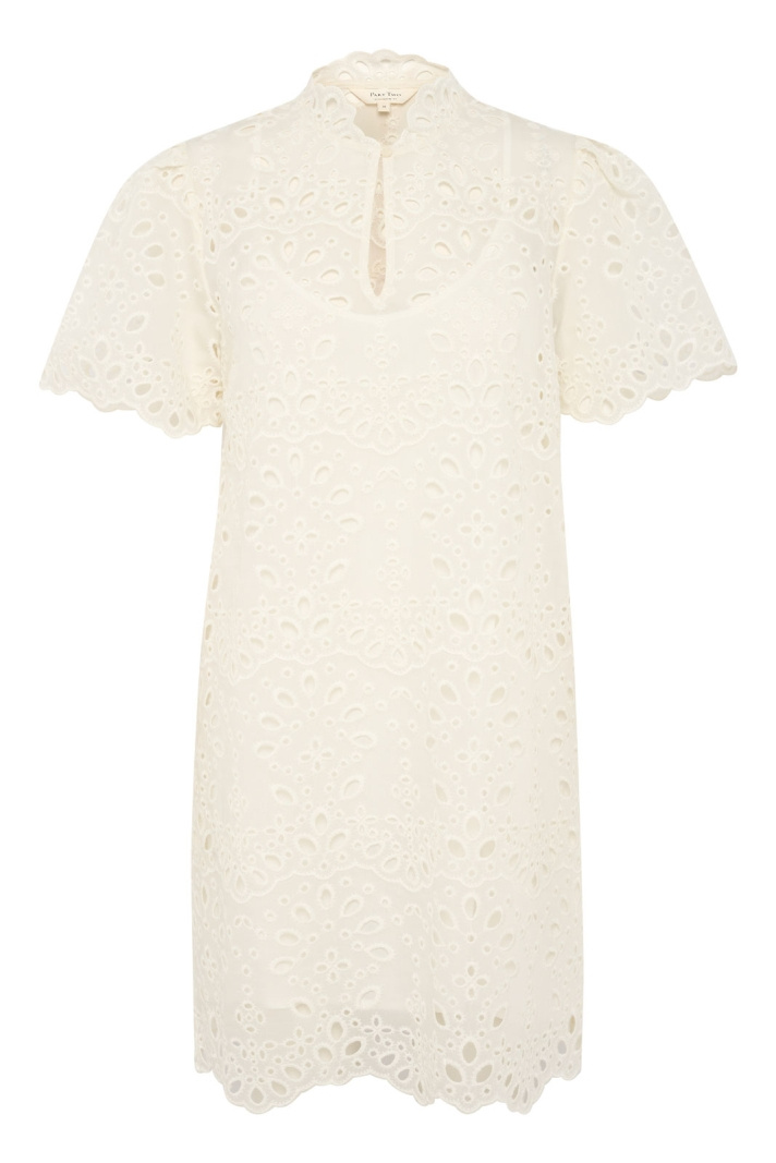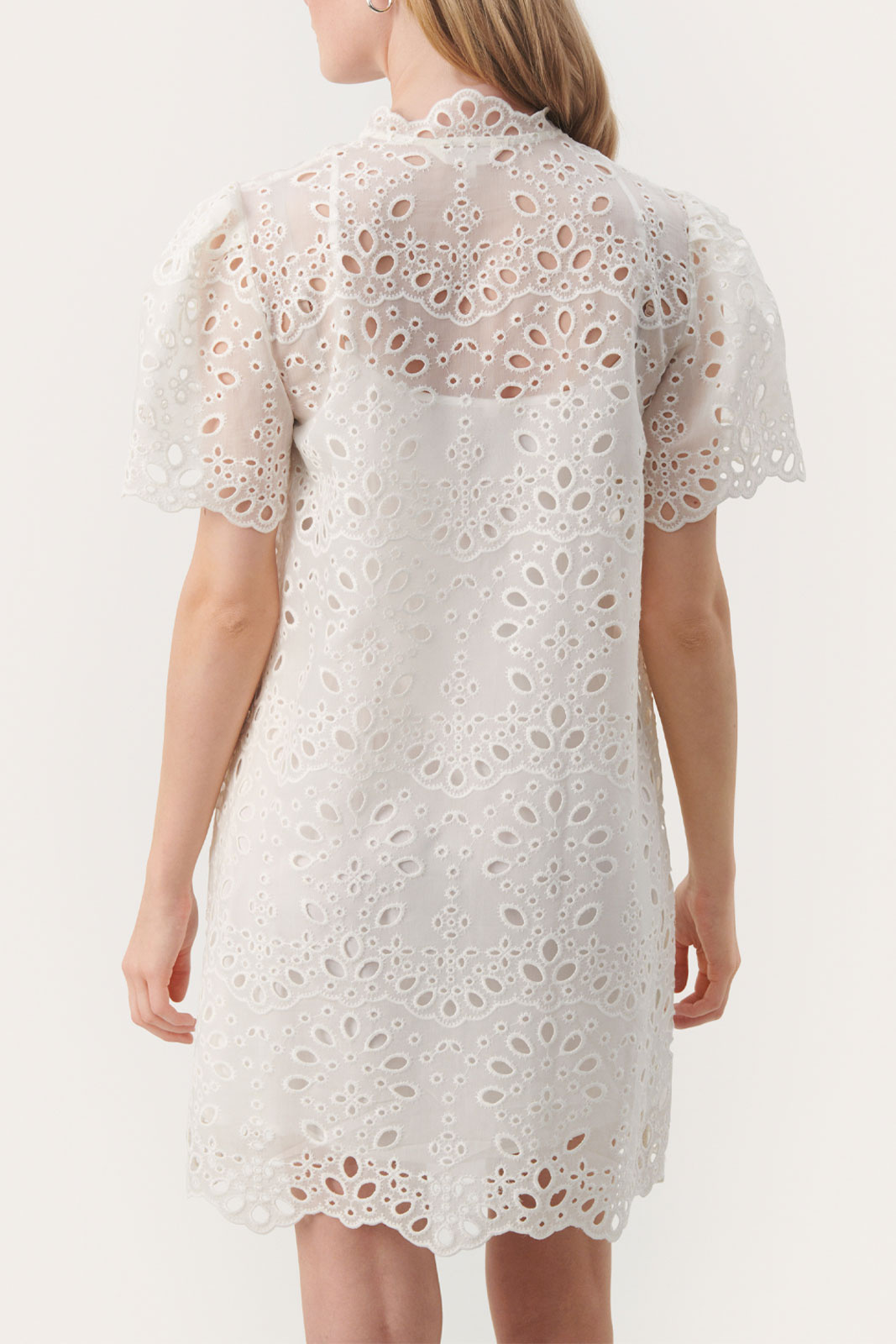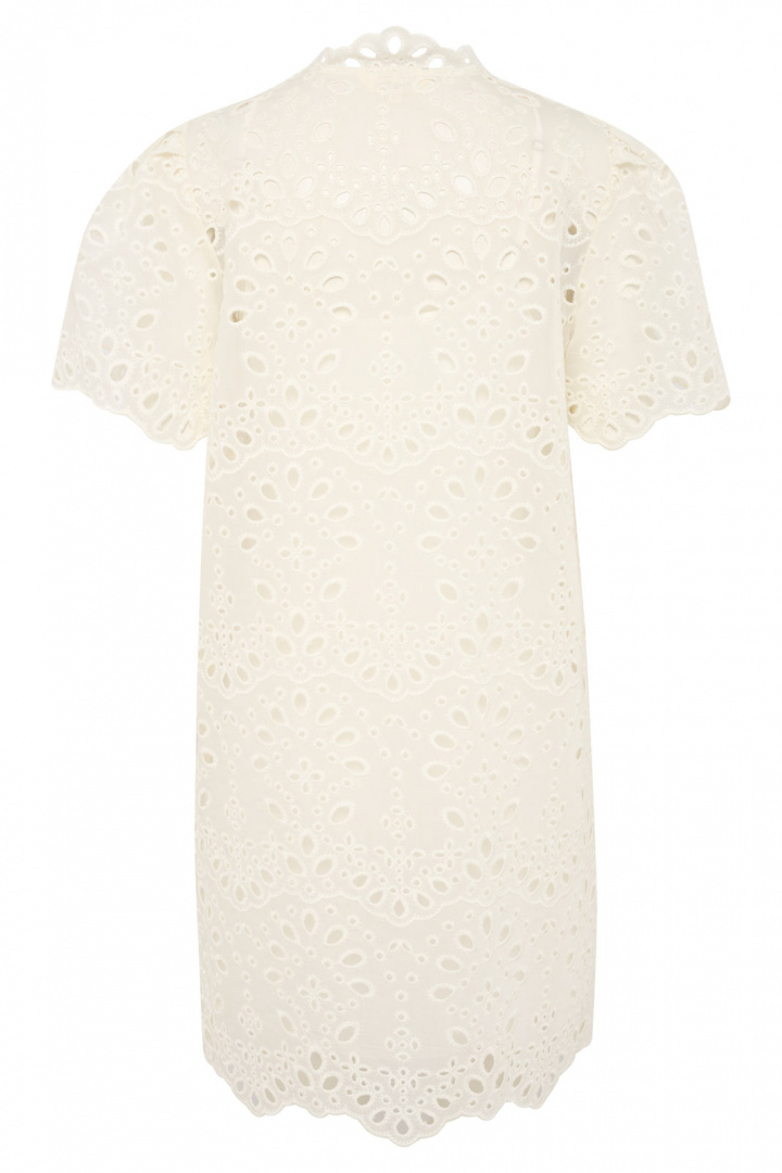 - Pyöreä pääntie, jossa on nappi ja pitsireuna