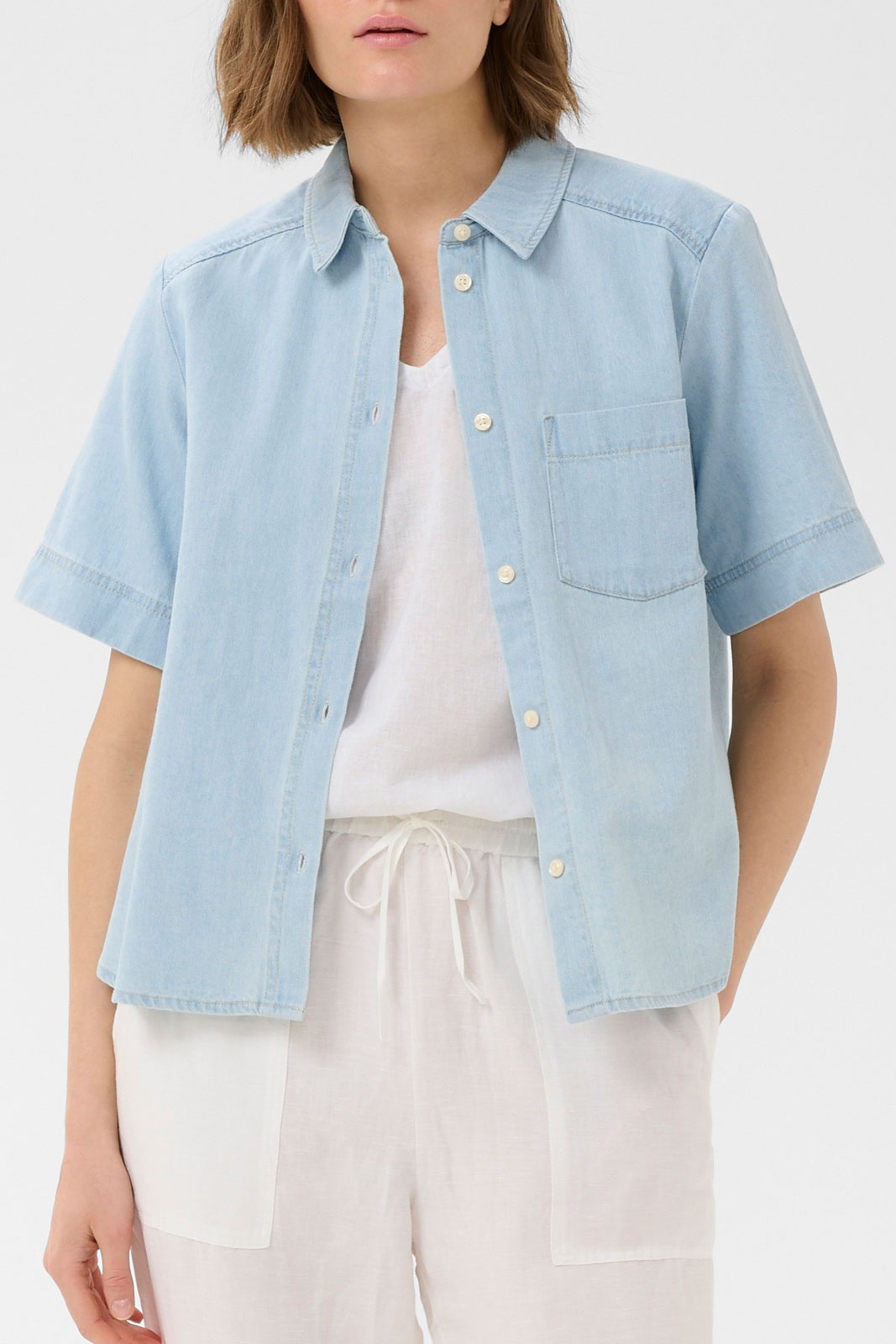Normaalin istuvuuden ansiosta se sopii hyvin kerrospukeutumiseen tai eristyksenä neuletakin alle - käytännöllinen perustuote, joka viimeistelee ilmeen ilman, että se tuntuu liian tiukalta. Tämä naisten jeansshirt toimii yhtä hyvin farkkujen ja lenkkareiden kanssa kuin chinot tai nahkahameen kanssa, mikä tekee siitä