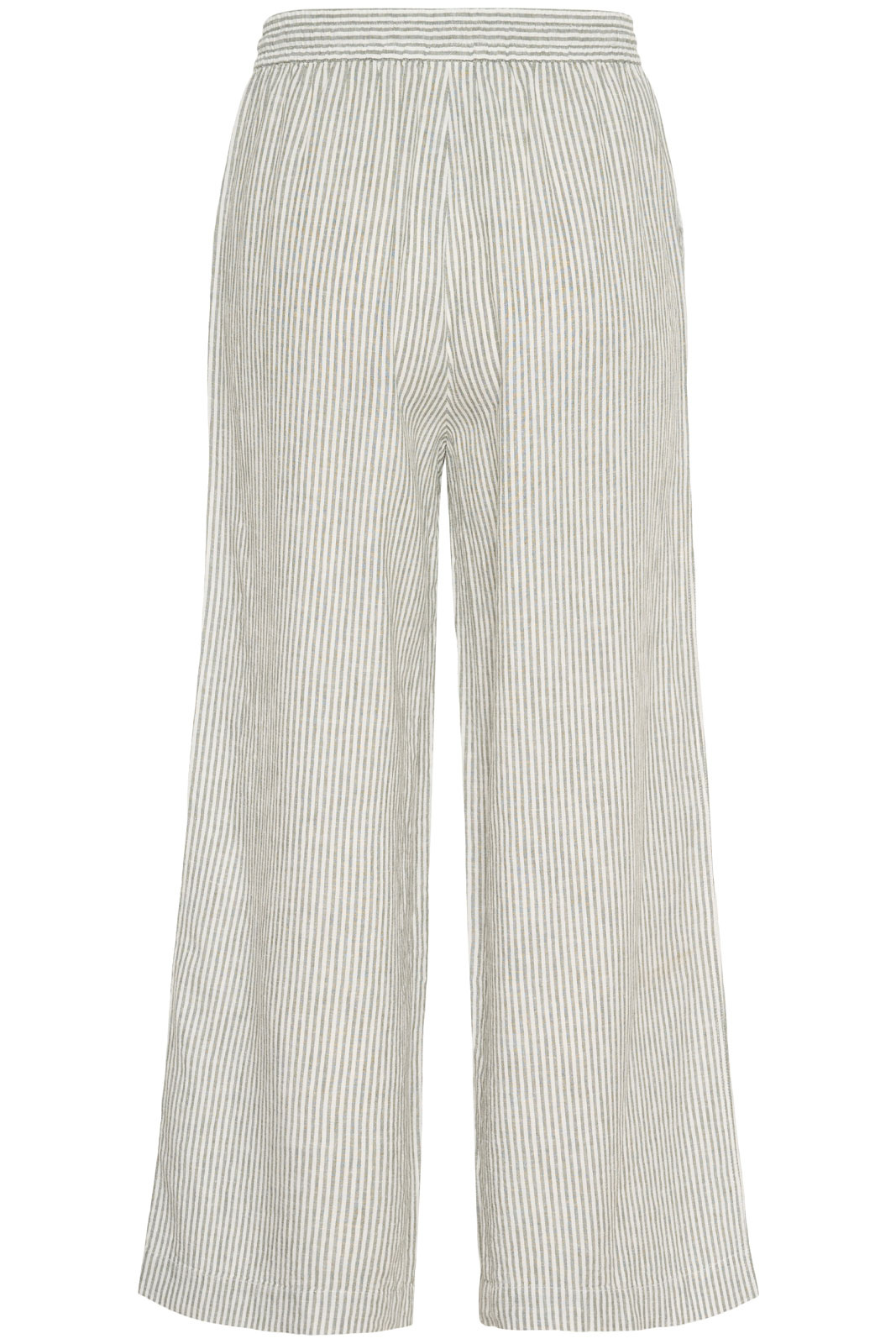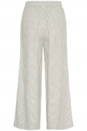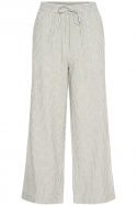Valmistettu miellyttävästä pellavan ja viskoosin sekoituksesta (50% pellavaa ja 50% viskoosia), joka tuntuu pehmeältä ihoa vasten ja hengittää hyvin lämpimällä säällä. Raidallinen kangas tuo klassista, kesäistä tunnelmaa, joka on helppo yhd