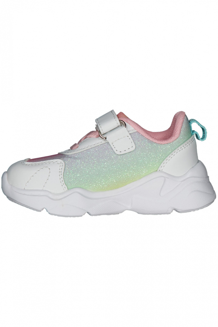 Tuttu tarranauha tekee pukemisesta ja riisumisesta helppoa ja nopeaa, ilman että kengät tarvitsee sitoa joka kerta. Kimaltava pinta tuo leikkisän ja silmiinpistävän yksityiskohdan, jota lapset usein arvostavat, ilman että designia on liioitelt