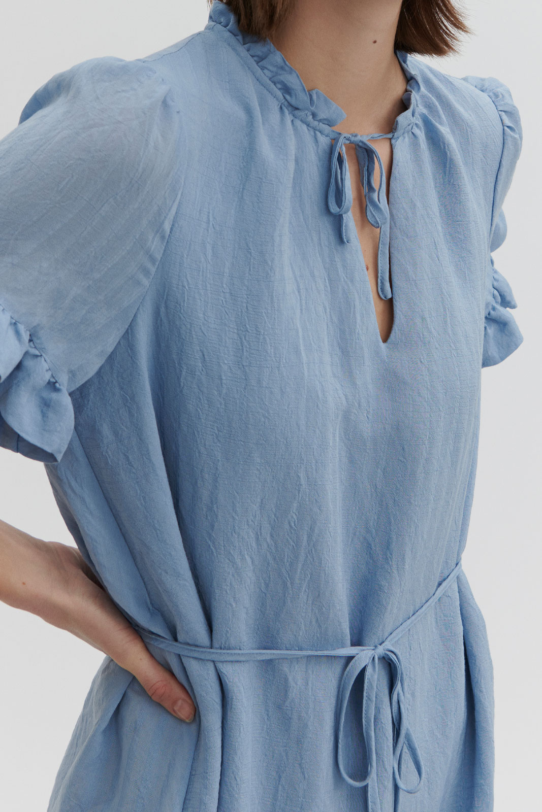 - Volanttiyksityiskohta kauluksen ympärillä ja hihansuissa