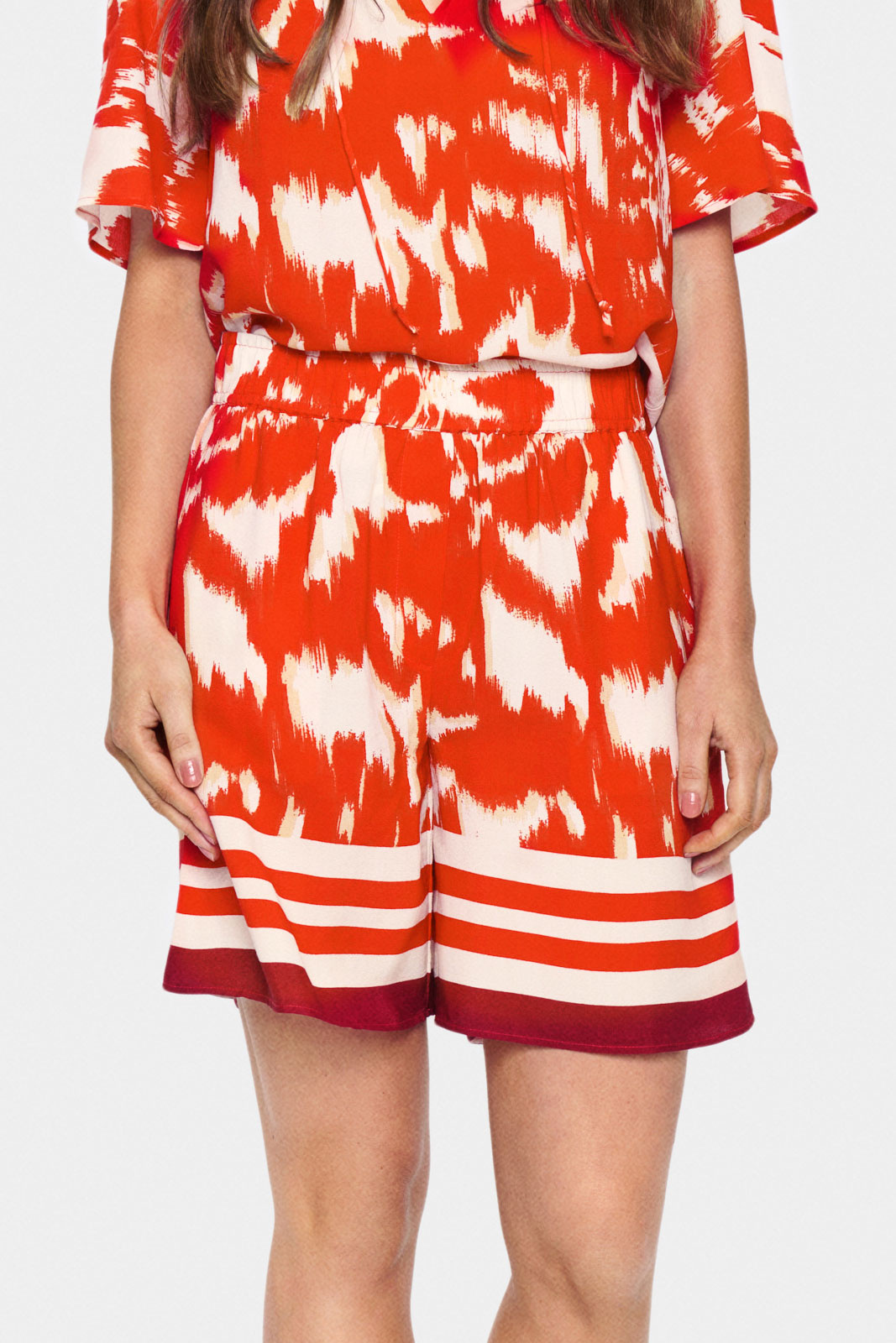100% viskoosista valmistetut shortsit tuntuvat pehmeiltä ihoa vasten ja niissä on kaunis, laskeutuva pudotus, joka liikkuu kauniisti kehon mukana. Tämä laatu