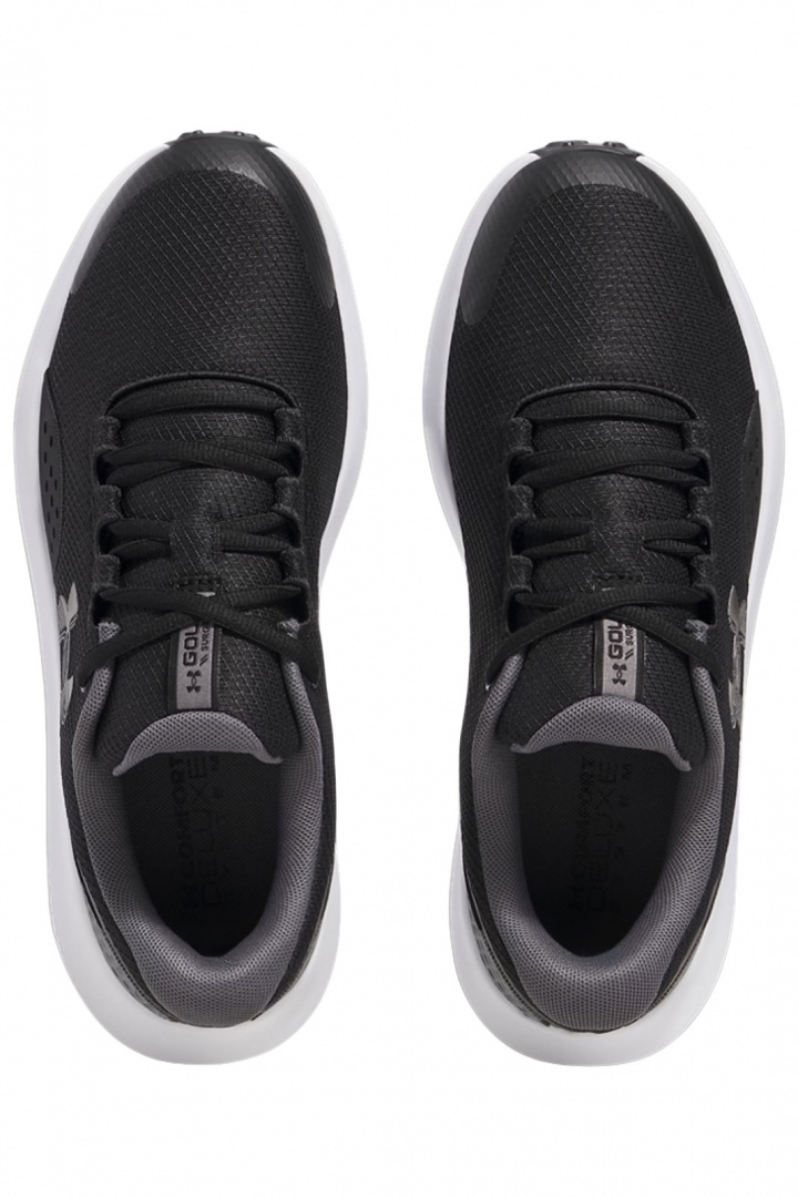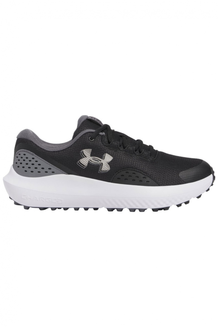 Ua Surge Golf -kengät Under Armourilta on suunniteltu tarjoamaan mukavuutta, tukea ja suorituskykyä koko kierroksen ajan. Päällinen koostuu tekstiilistä ja synteettisestä materiaalista, mikä tuo keveää ja kestävää tuntumaa, kun taas tekstiilisisus antaa pehmeän ja miellyttävän kosketuksen heti jalkaan astuessasi. Nauhoitus mahdollistaa nopean ja varman, räätälöidyn istuvuuden, ja vedenpitävä rakenne suojaa kosteudelta sateisina päivinä tai kosteilla greeneillä.
