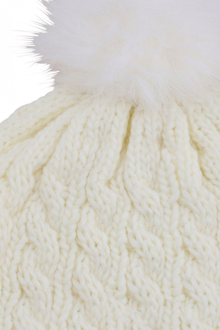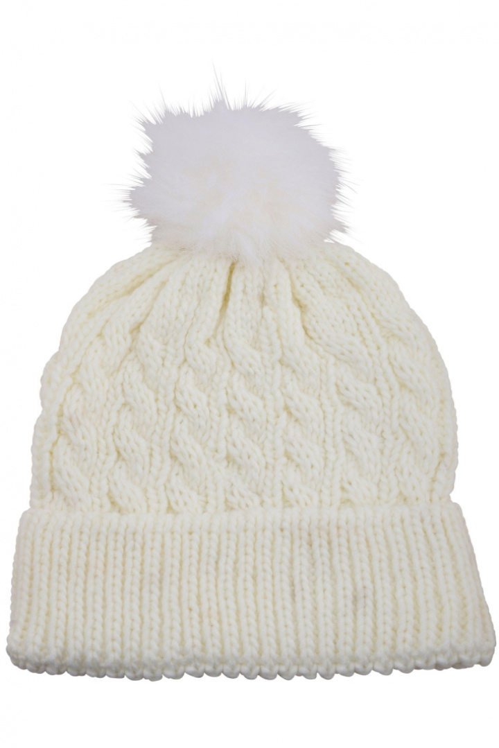 Stickad barnmössa med pompom.
