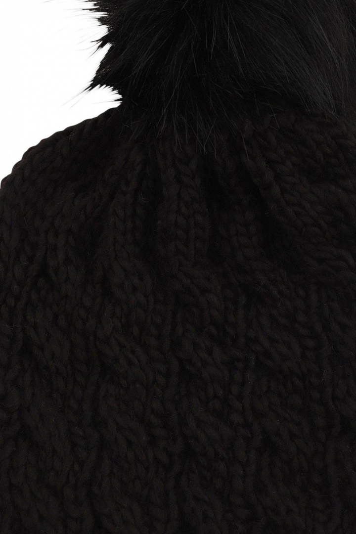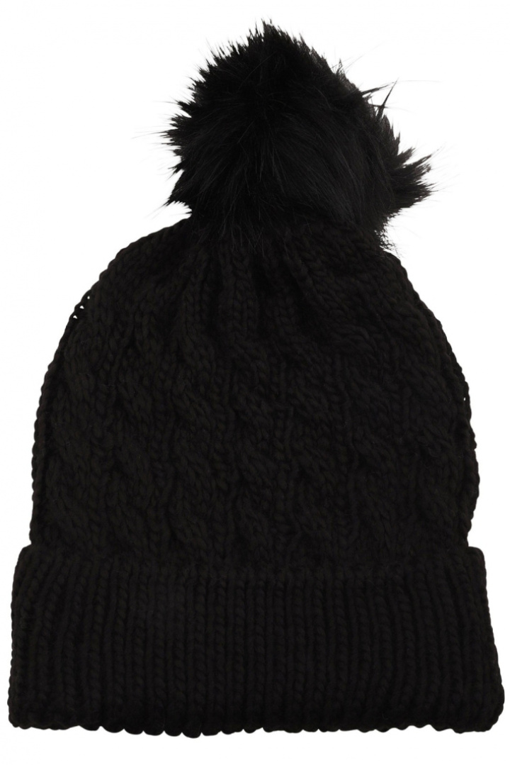 Stickad barnmössa med pompom.