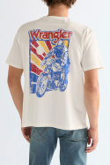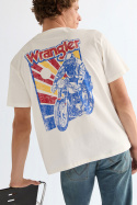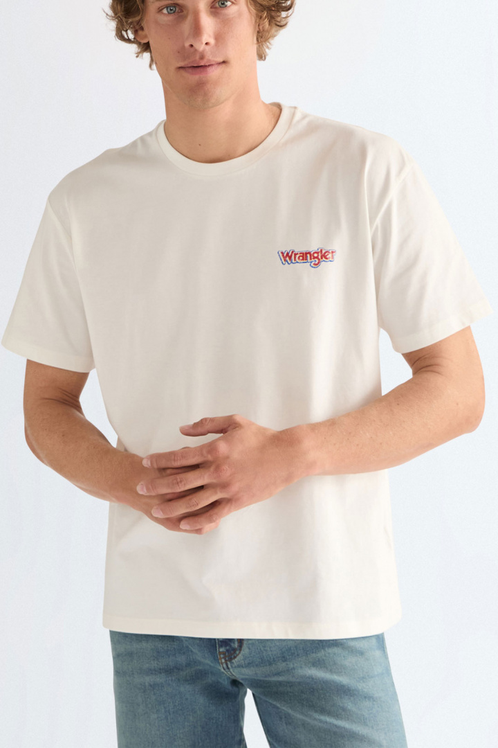 Vaikka Wrangler tunnetaan pääasiassa farkuistaan, heidän valikoimansa on laajentunut. Voit yhdistää farkkusi Wranglerin painatetun t-paidan kanssa. Ne ovat usein inspiroituneita aikakausista kuten 70-luvulta, ja tämä näkyy puseroissa ja t-paidoissa.
